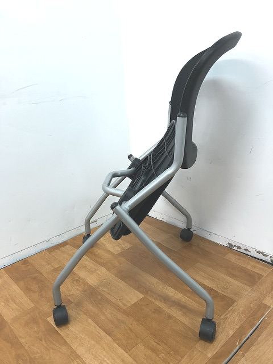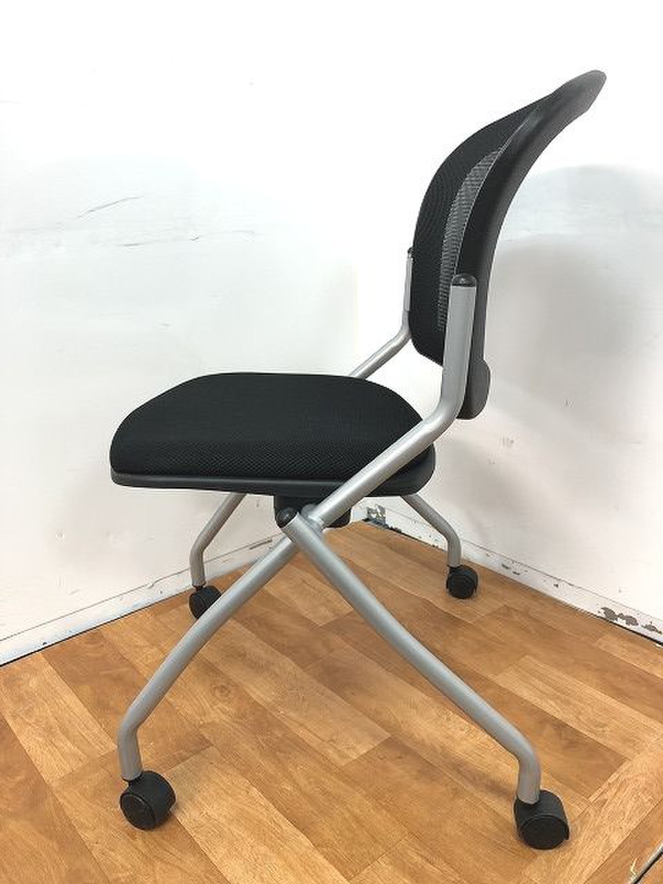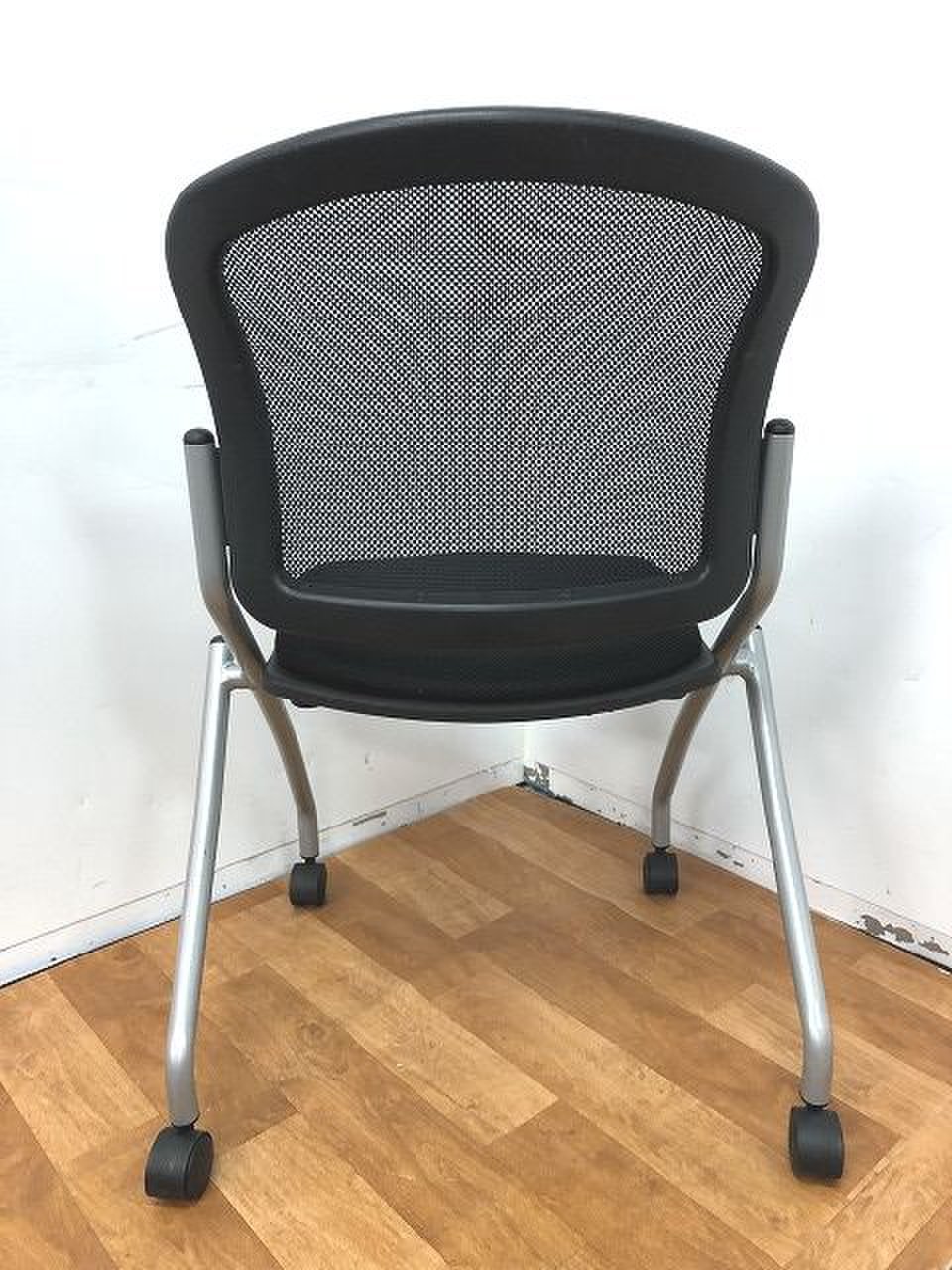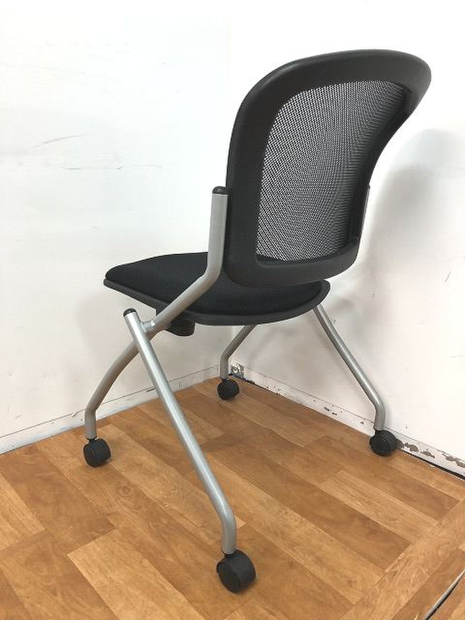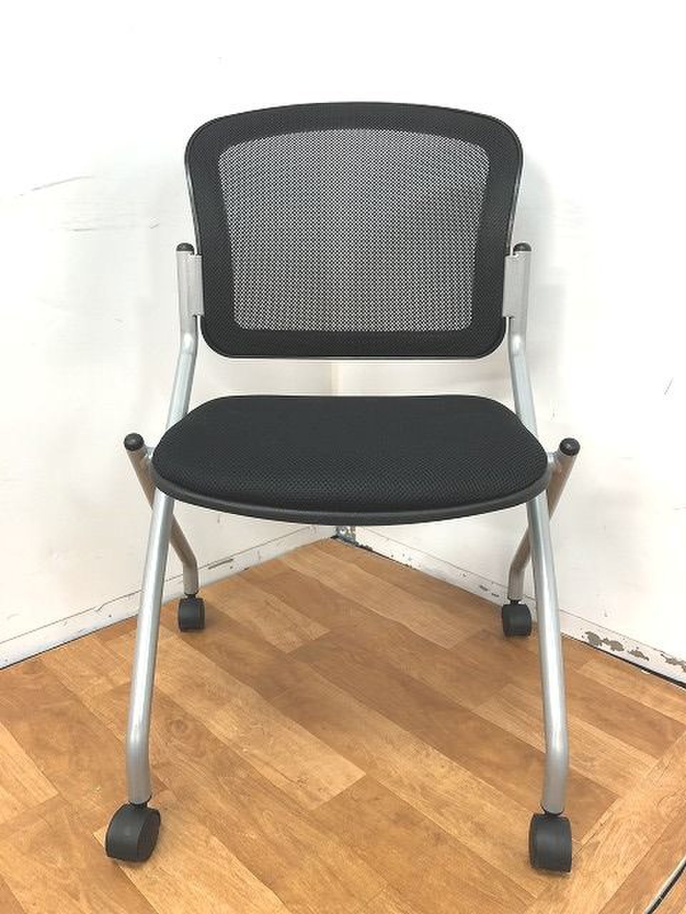 【KS】【コスパ最強メッシュミーティングチェア!】 座面が折りたためて省スペースなネスティングタイプ!- 茨城南店