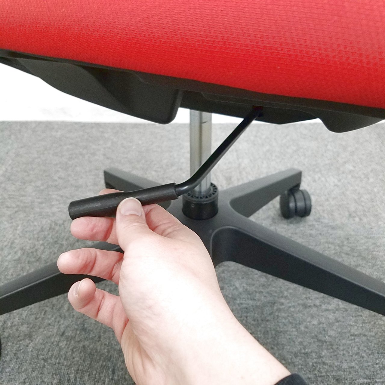スムーズな動きのガススプリングにより、上下100㎜のロングストロークを実現。身長体格に応じた調整が可能です。