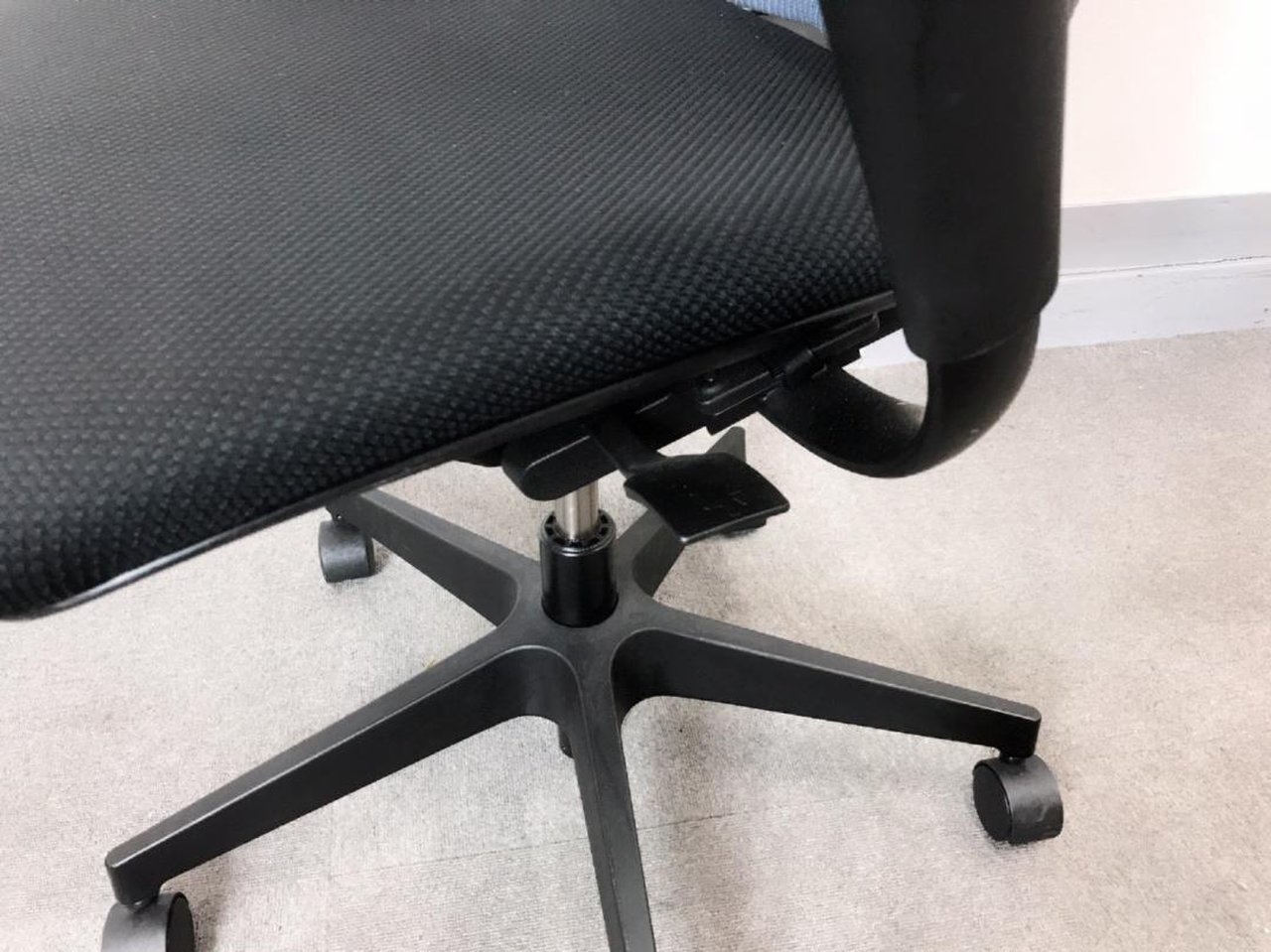例えば、座面は、イトーキ独自の"ベンディングシート"という機構により、クッション、インターシェル、空洞という三層構造になっています。 この真ん中に挟まっているインナーシェルが、着座時の姿勢に合わせて体重を分散してくれるので、どんな姿勢でも体になじみ、疲労を軽減してくれます。 さらに、座面は前後に4センチほど奥行きを調整でき、前傾姿勢で座りたい、深く腰掛けたい、膝裏を圧迫されたくないなど、個人の好みに合った快適さにカスタマイズが可能となっています。