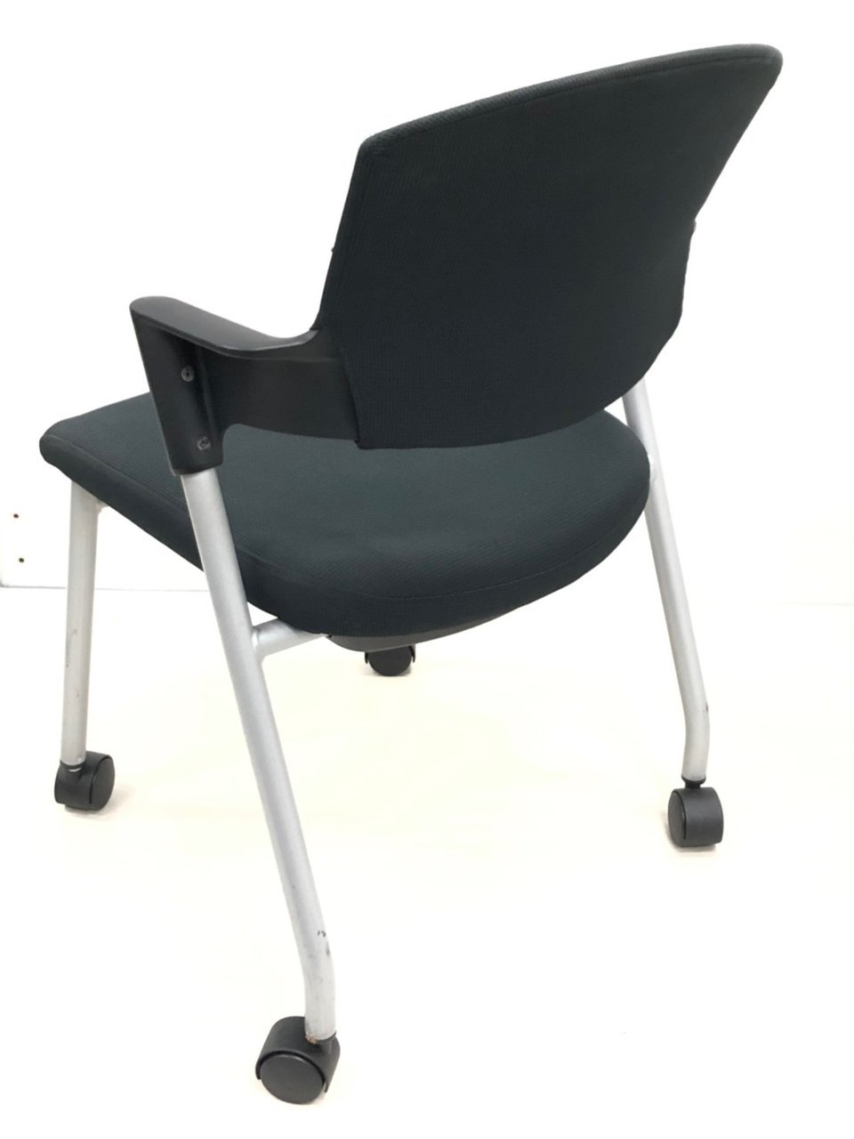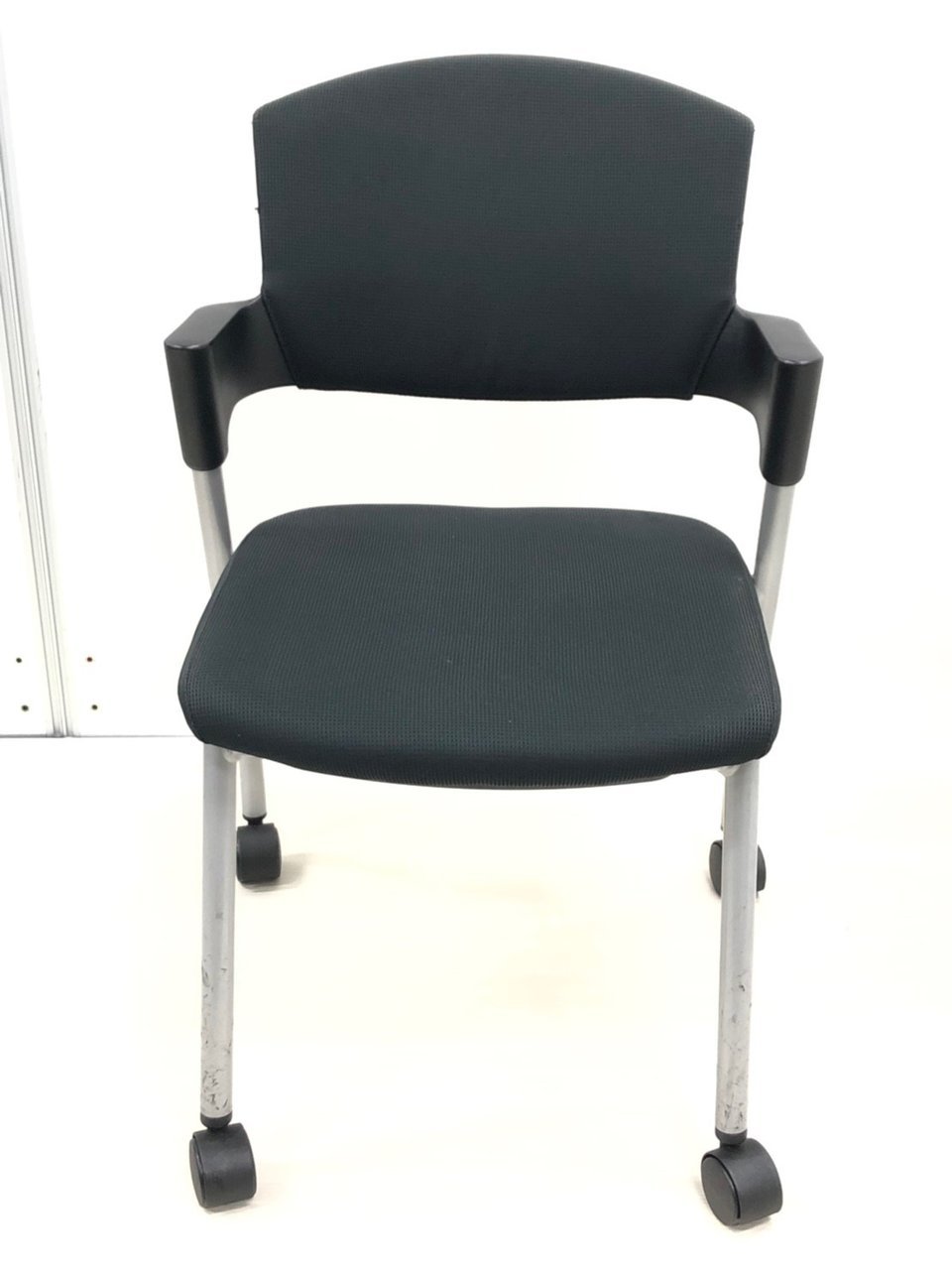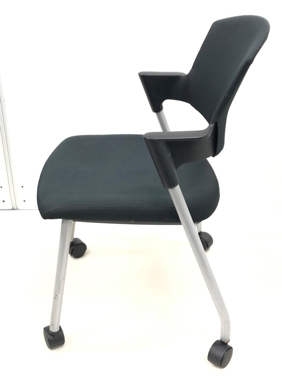 【シンプルスマートなスタッキングチェア!分厚いクッションで長時間でも快適な座り心地!】■スタッキングチェア 肘付ミーティングチェア ■固定肘 ■キャスター付 ■ブラック ■背面樹脂/コクヨ(KOKUYO/プロッティ
