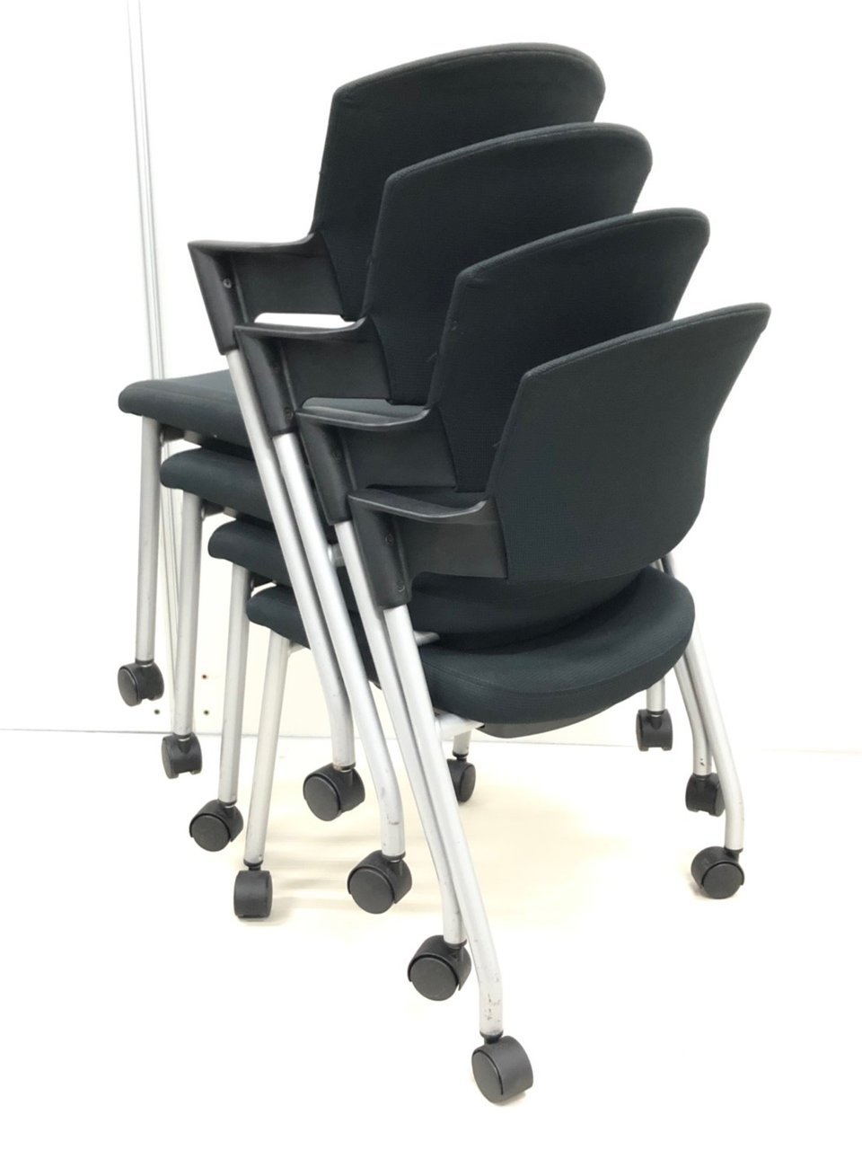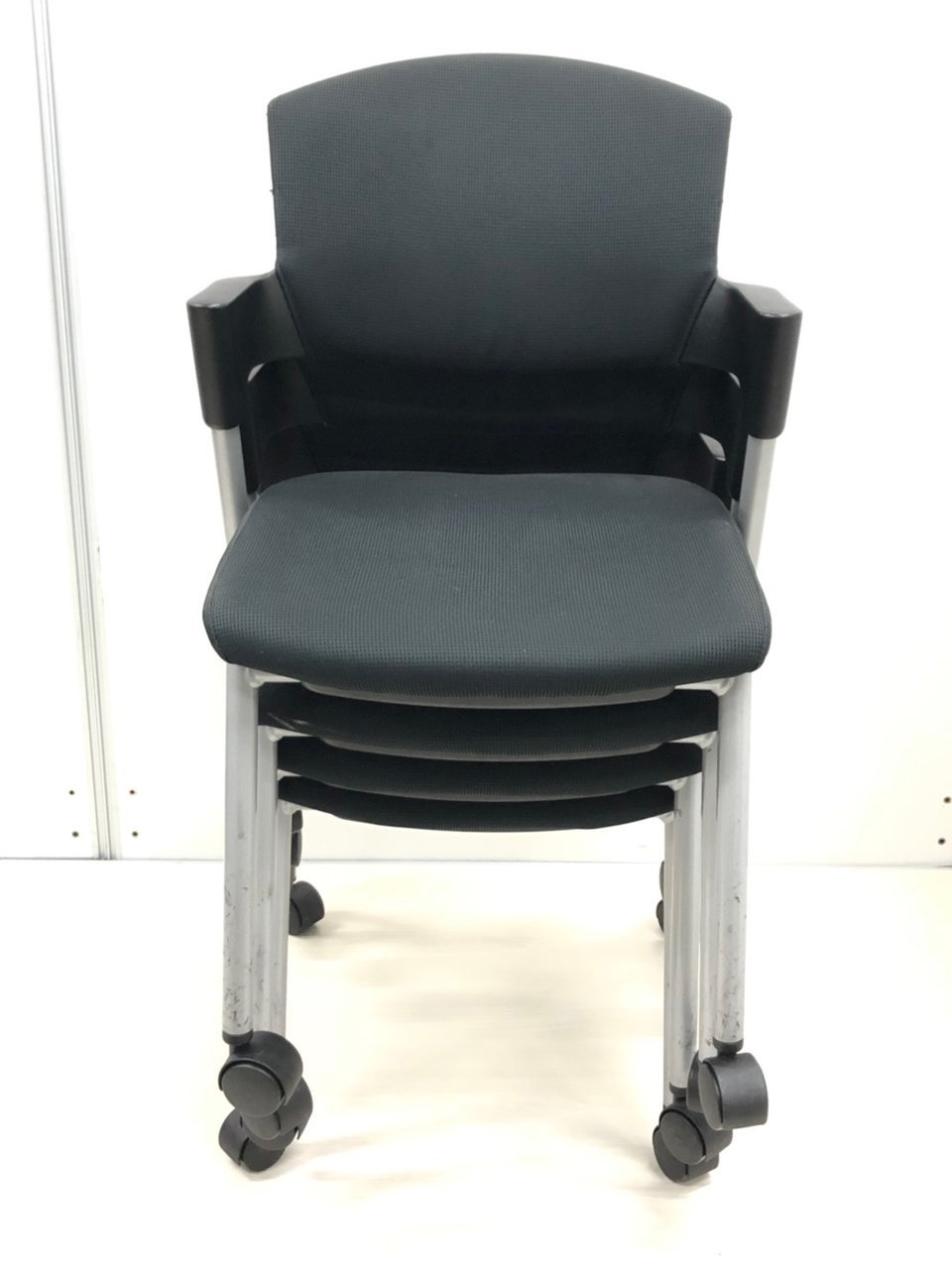 【セット商品(チェア×4脚)】【シンプルスマートなスタッキングチェア!分厚いクッションで長時間でも快適な座り心地!】/オススメ(おすすめ) /人気商品【弊社使用欄:A01037619】■スタッキングチェア 肘付ミーティングチェア ■固定肘 ■キャスター付 ■ブラック ■背面樹脂/コクヨ(KOKUYO/プロッティ