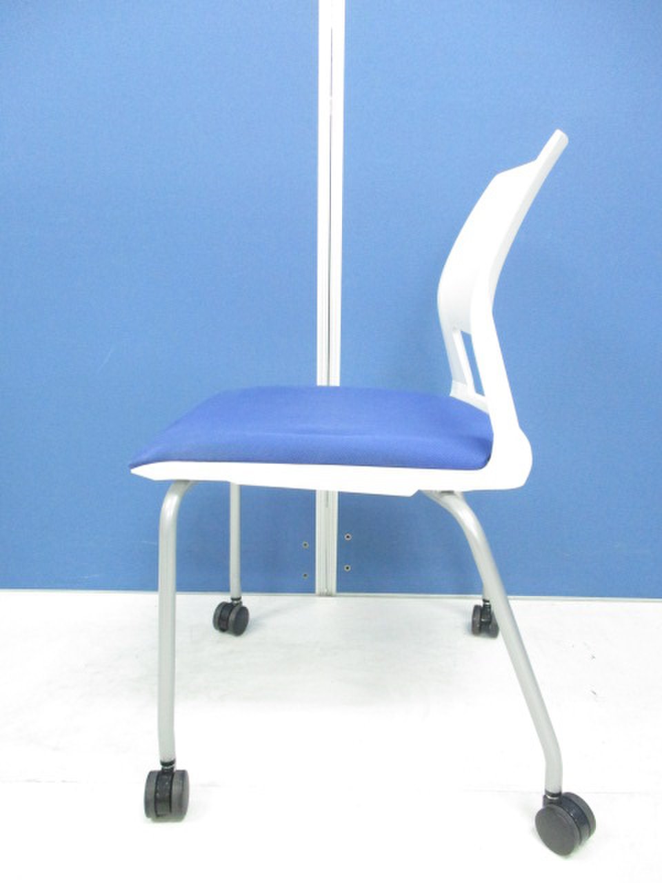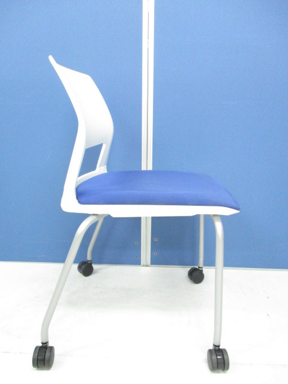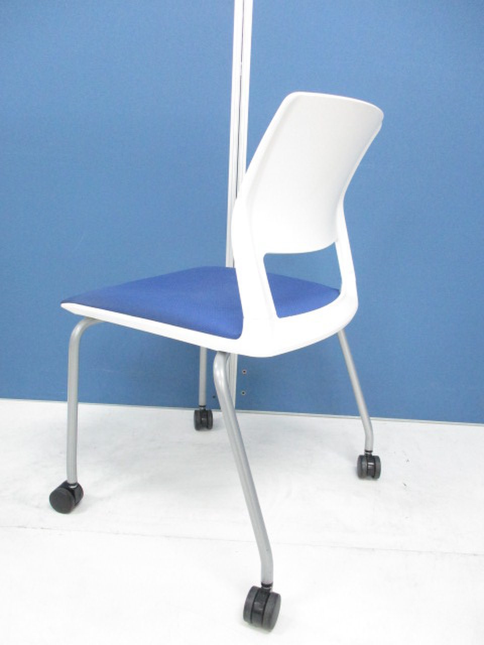 【重ねて省スペース】コクヨ製 160シリーズ スタッキングチェア【ホワイト×ブルー】【RP】- 品川・三田店