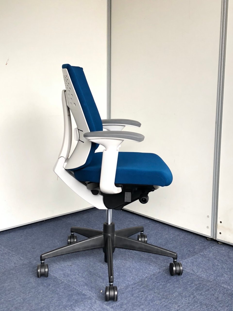 【サポート感とフィット感の絶妙なバランス!】■コクヨ製 ウィザード3チェア 肘付 ブルー ホワイトシェル ■スタイリッシュなデザインで快適なワーキングチェア!【KOKUYO Wizard3】★3