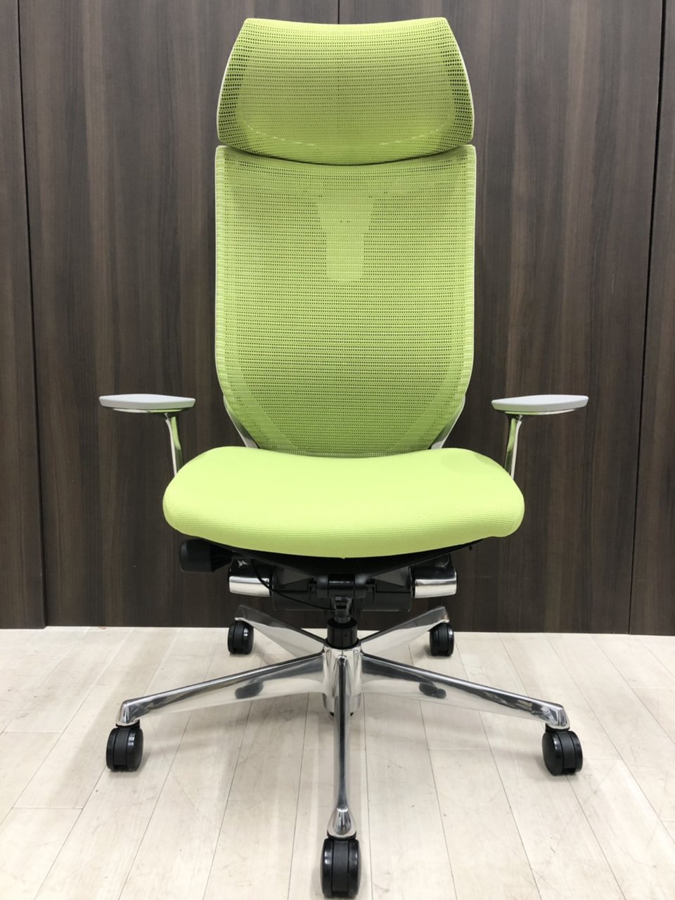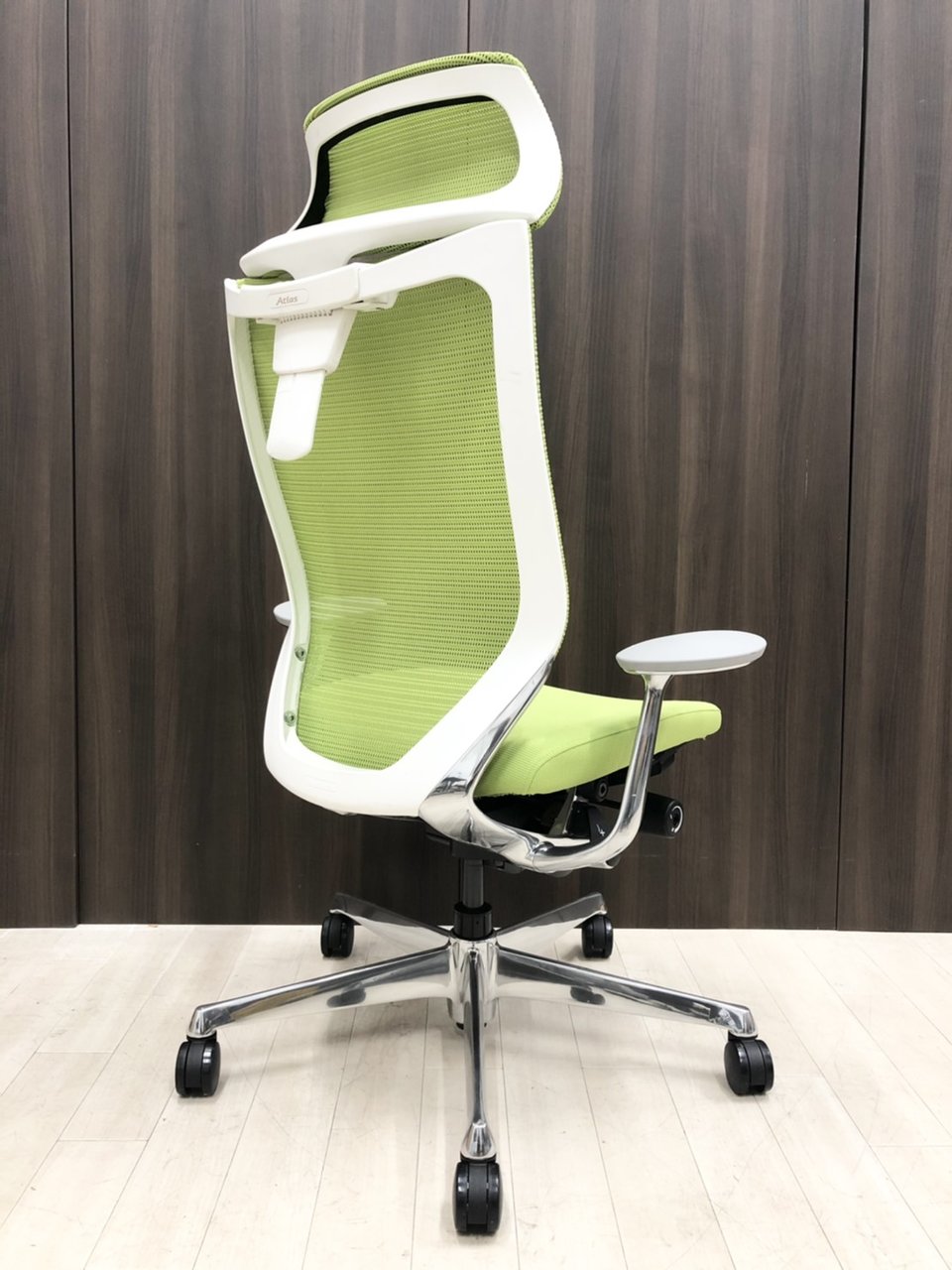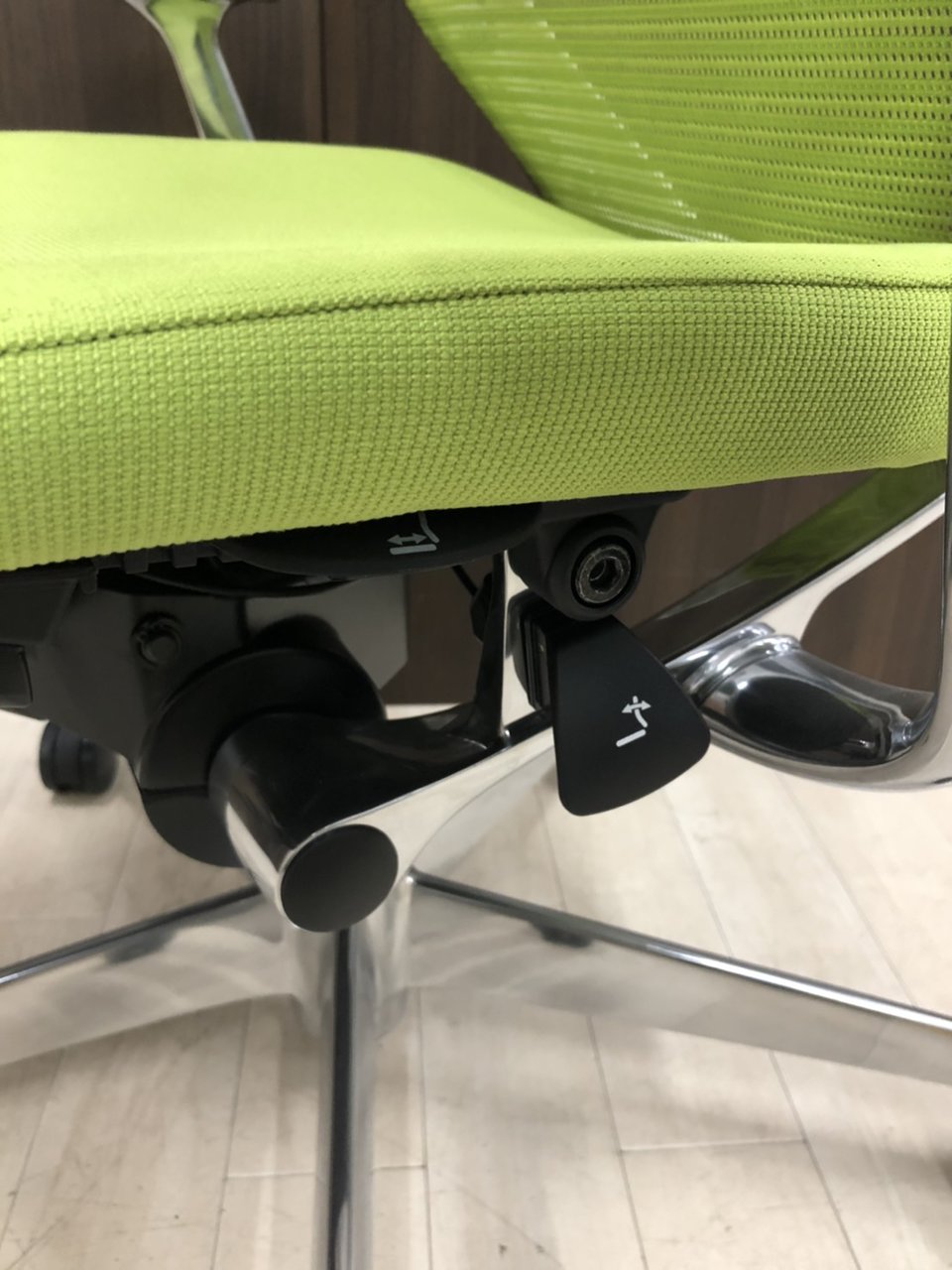 低座面使用で安定感抜群!限定2脚の希少品です!オカムラ/アトラス/グリーン/固定肘- つくば店