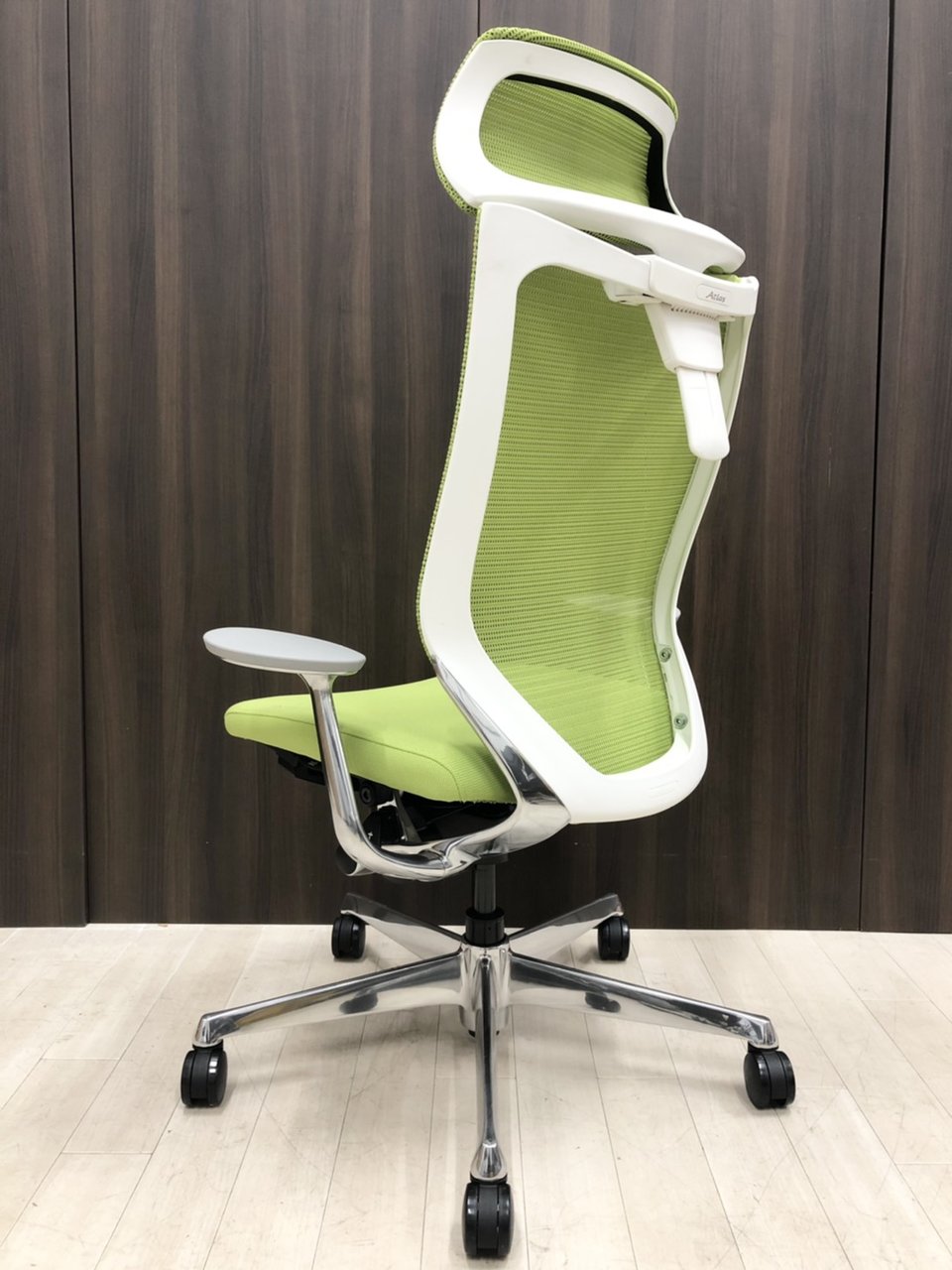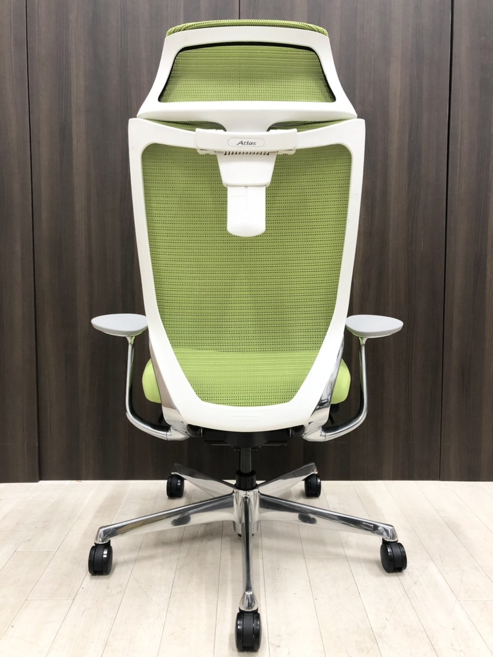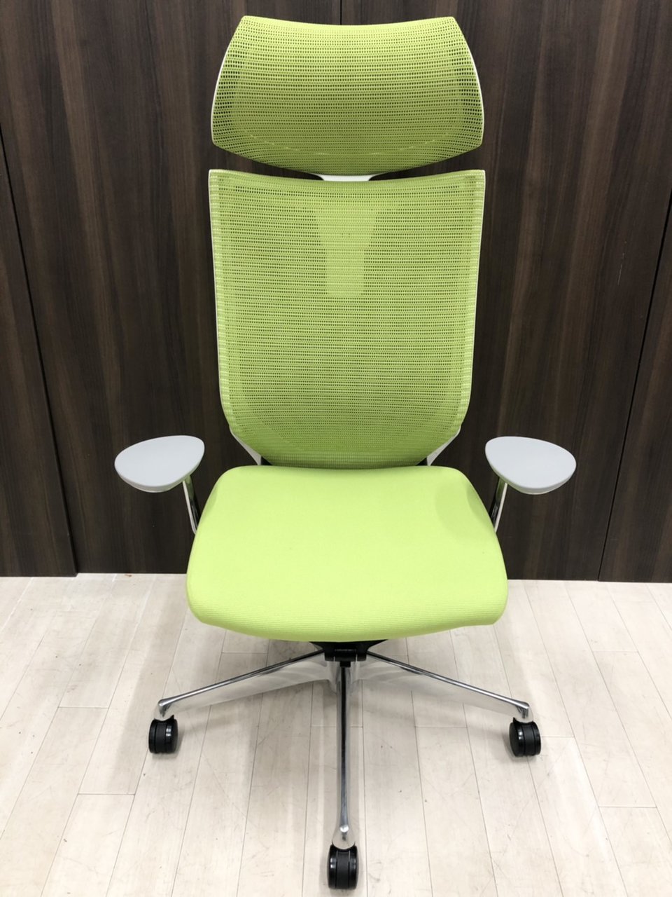 低座面使用で安定感抜群!限定2脚の希少品です!オカムラ/アトラス/グリーン/固定肘- つくば店