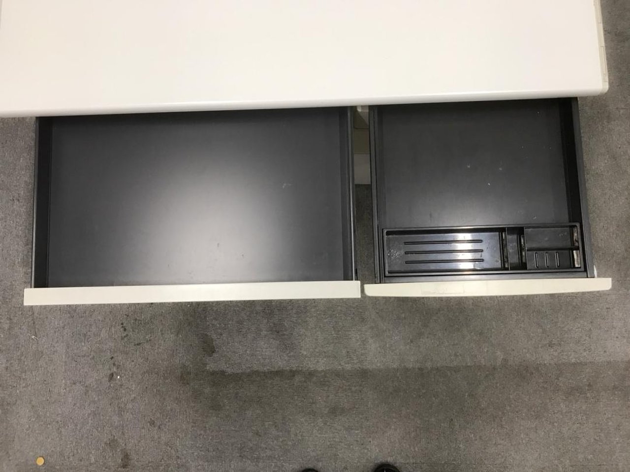 PCを置くスペースを確保可能で、書類や私物は右下の引き出しに収納できます。