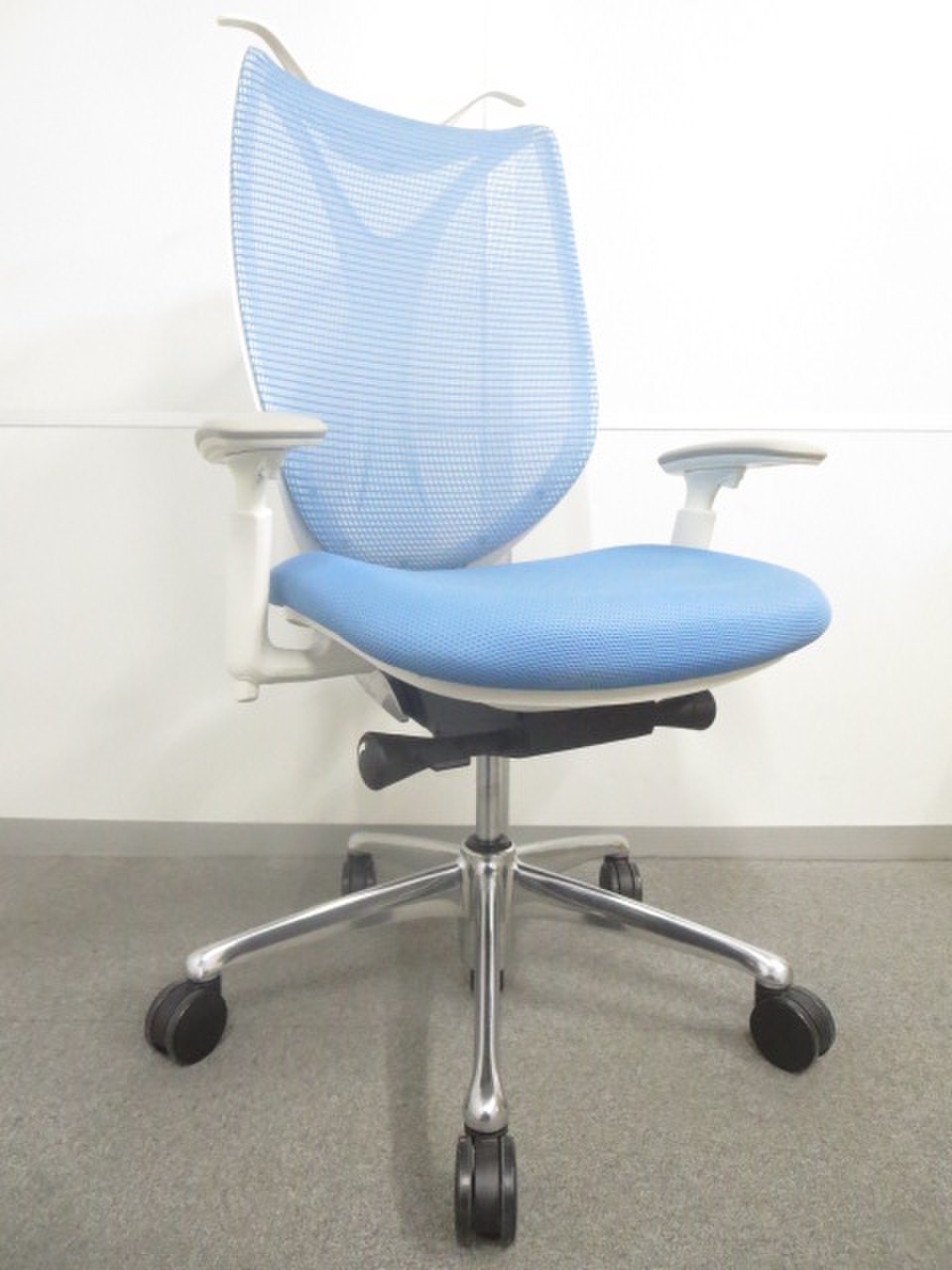 【在庫セール品】【定価約16万円】【前傾チルト付!流れるような美しいフォルムの最高級メッシュチェア!】■オカムラ(okamura)製 Sabrina(サブリナ) ハイバック 肘付き ■可動肘 ■背面メッシュ:アクアブルー/座面:ブルー×ホワイトフレーム【AD】