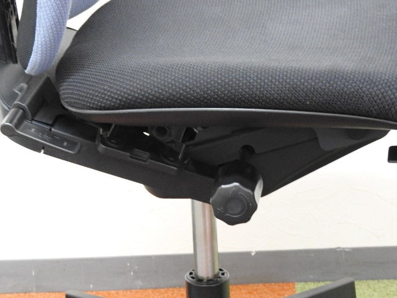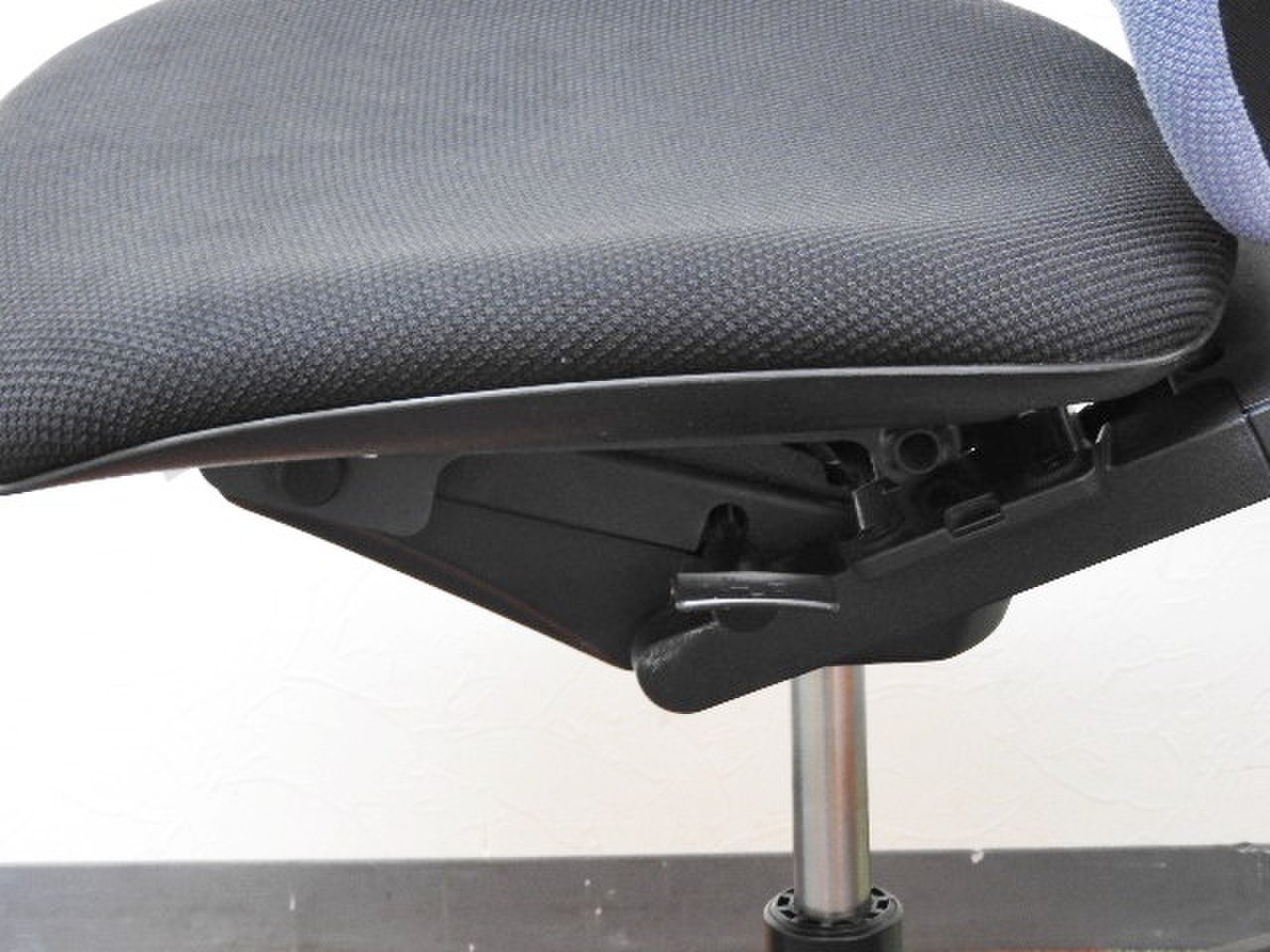 例えば、座面は、イトーキ独自の"ベンディングシート"という機構により、クッション、インターシェル、空洞という三層構造になっています。 この真ん中に挟まっているインナーシェルが、着座時の姿勢に合わせて体重を分散してくれるので、どんな姿勢でも体になじみ、疲労を軽減してくれます。 さらに、座面は前後に4センチほど奥行きを調整でき、前傾姿勢で座りたい、深く腰掛けたい、膝裏を圧迫されたくないなど、個人の好みに合った快適さにカスタマイズが可能となっています。