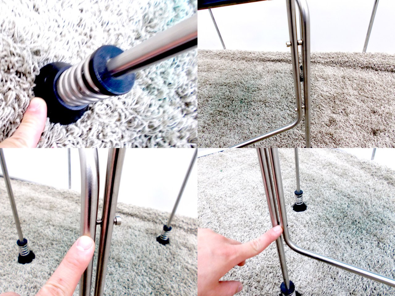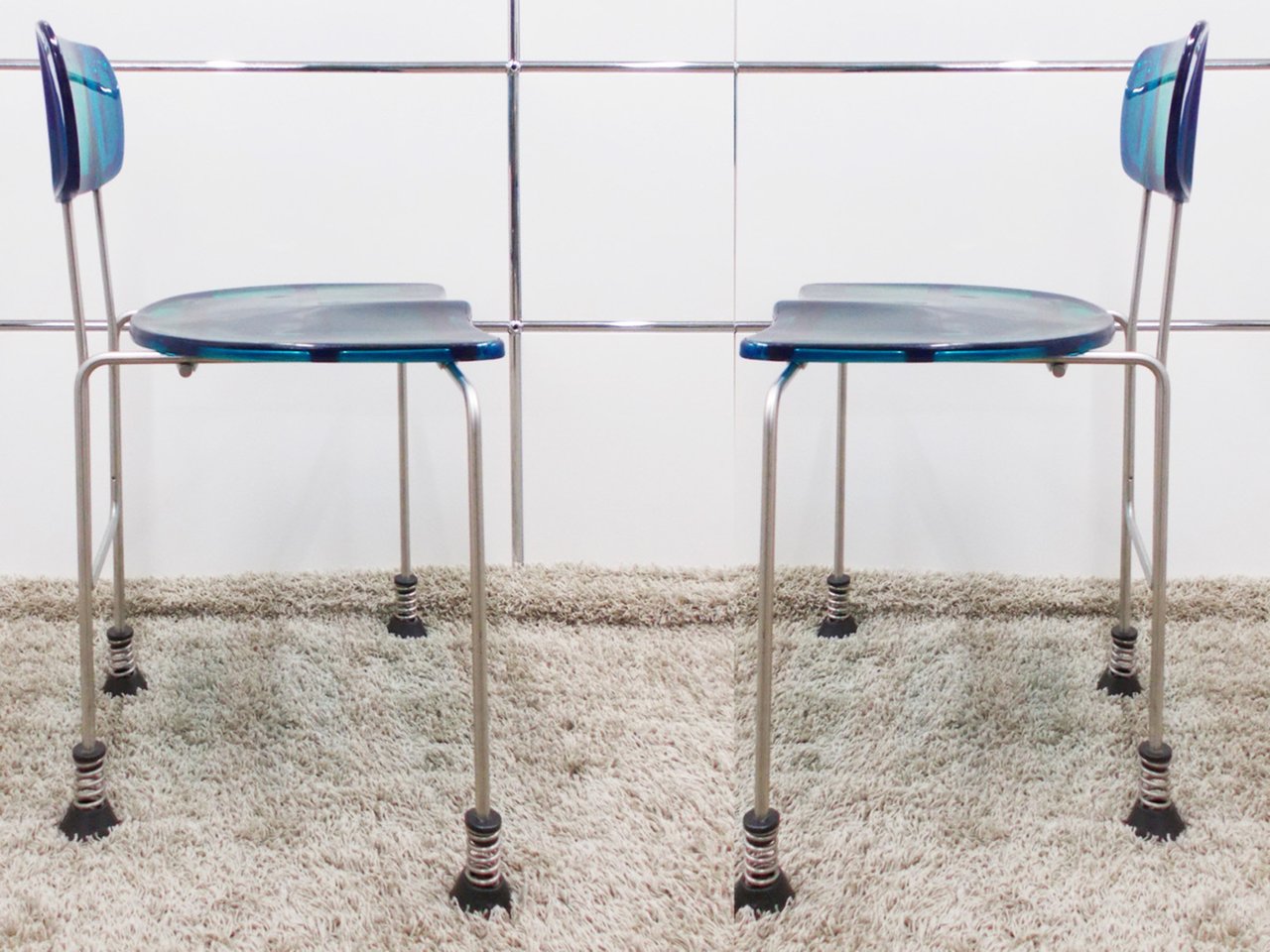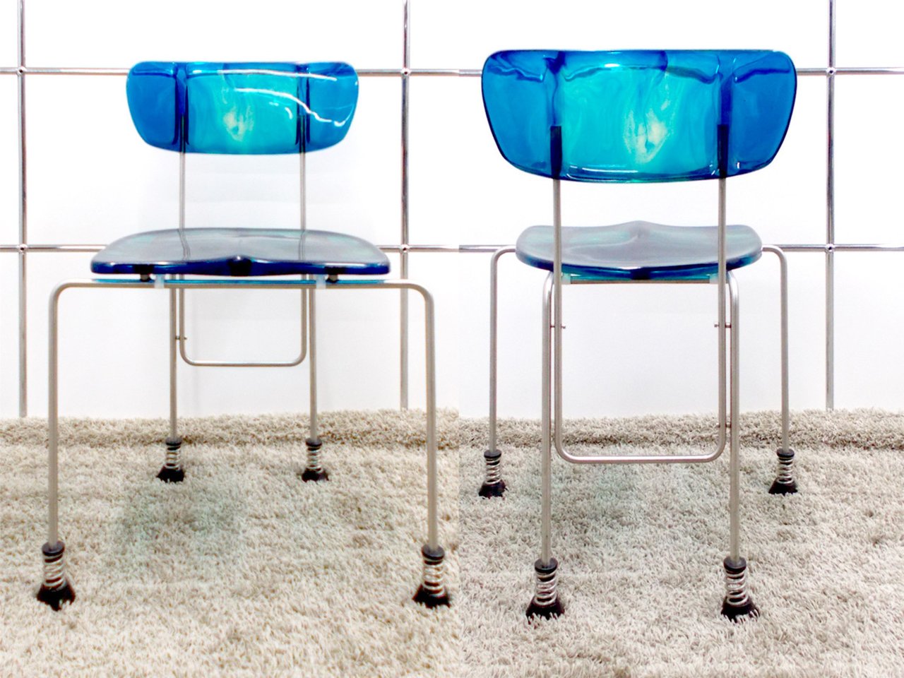 足首の部分がコイルスプリングになっていて、 硬質な樹脂と金属を組み合わせた椅子ながら、弾力性のある座り心地を生み出しています。