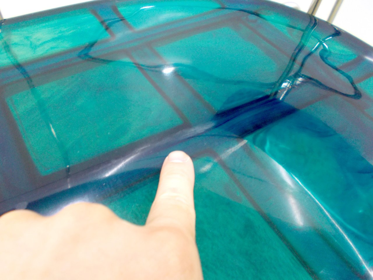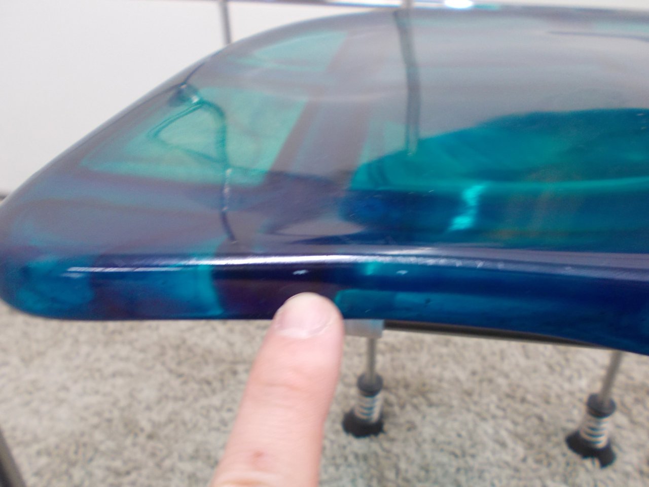 - かなり強い濃い黄ばみ・変色が商品全体にある。(例、座面・背もたれ、脚部等にある。)