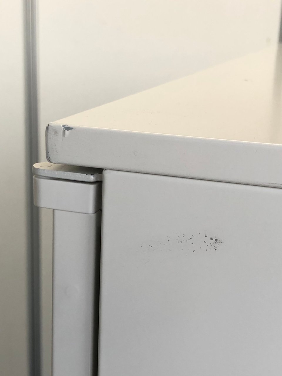 - 目立つ箇所あり傷・凹みが多数、深い傷・凹みが一部ある。(例、天板、正面、背部、サイド部分にある。)