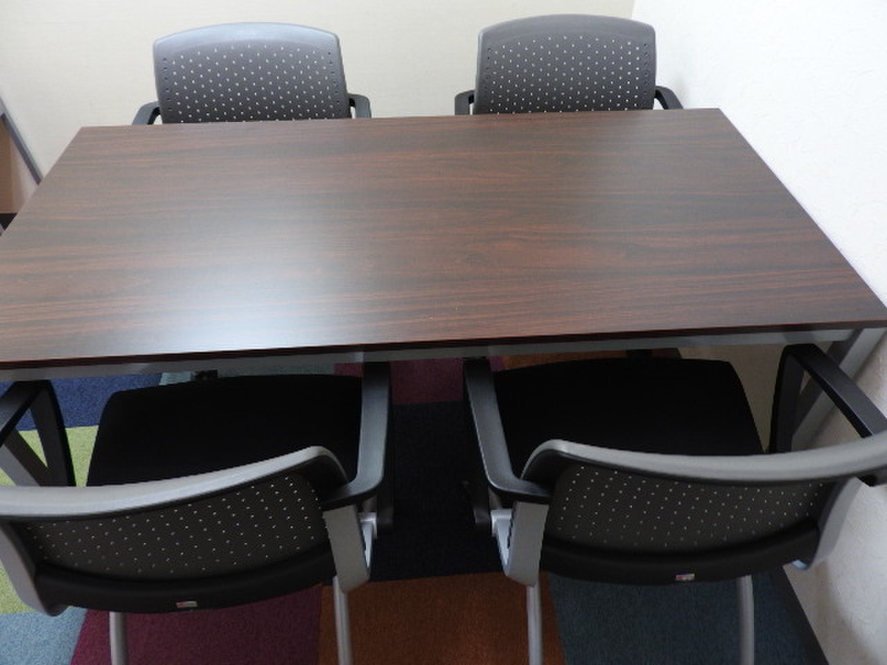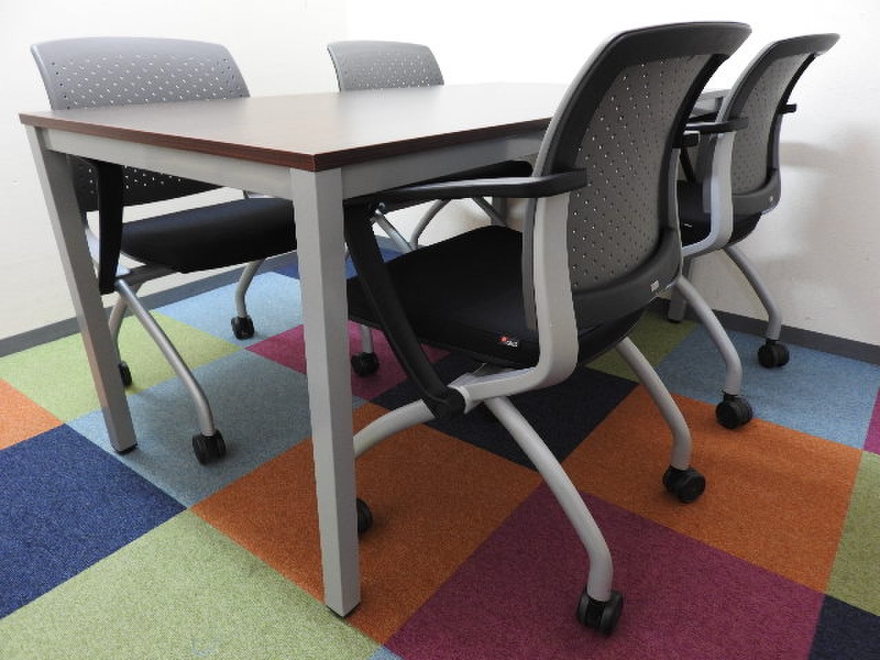 【4名用にお勧め!】簡易ミーティングセット【テーブル+椅子4脚セット】【160シリーズ】【DB】【RP】- 品川・三田店