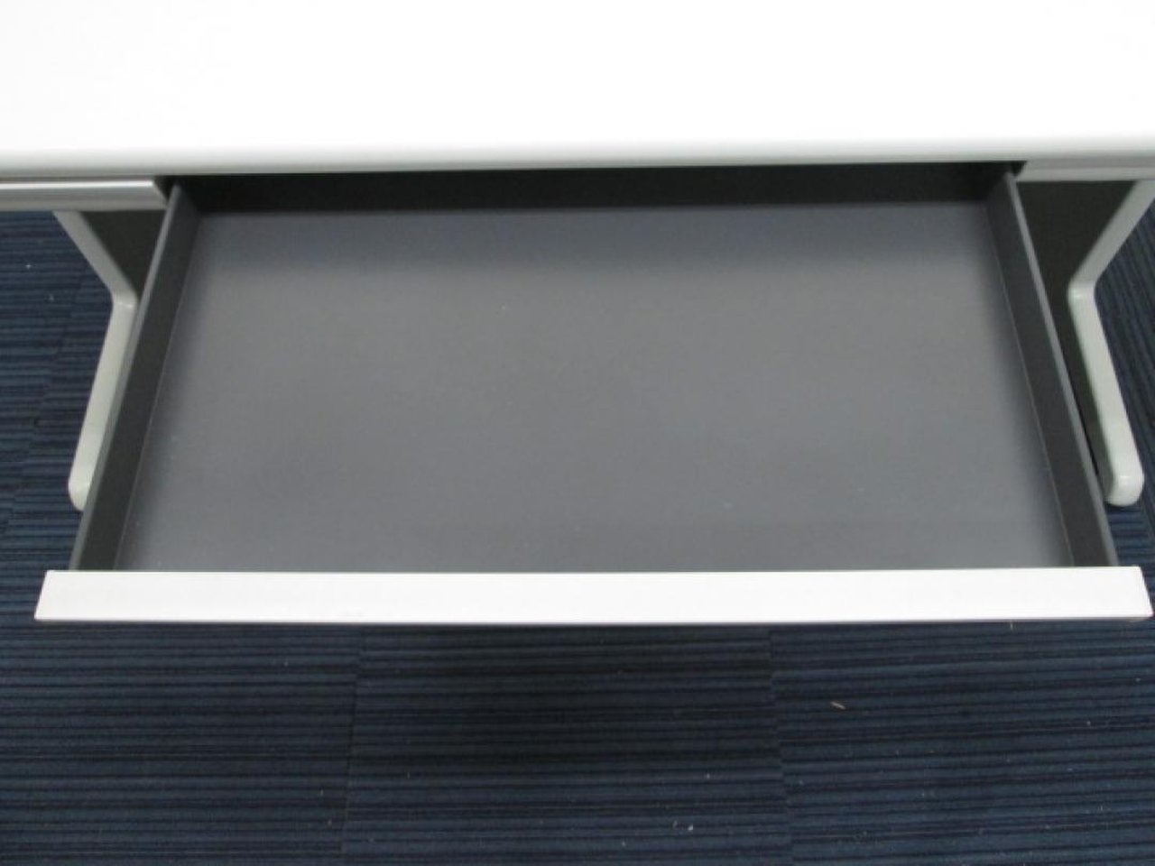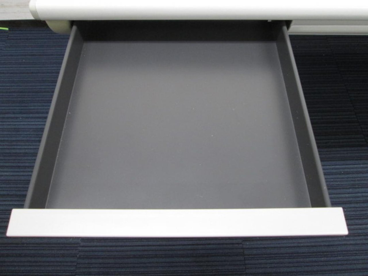 - 袖机のワゴンは、最下段がロング引出しになっており、従来より収納力120%アップ。