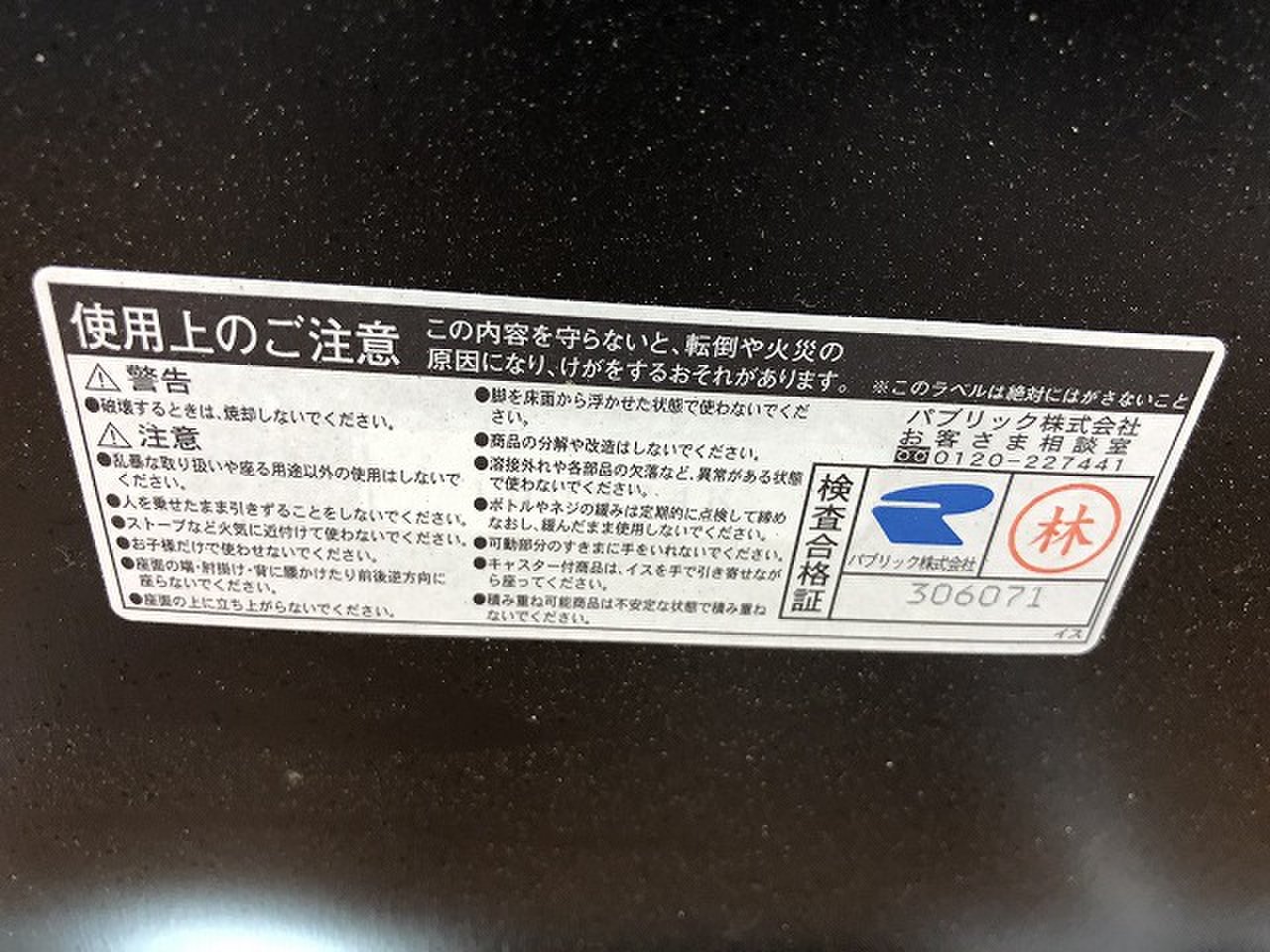 - 若干あり傷・破れ・ほつれ・へたり・しわが一部ある。(例、座面・背もたれ、脚部等にある。)