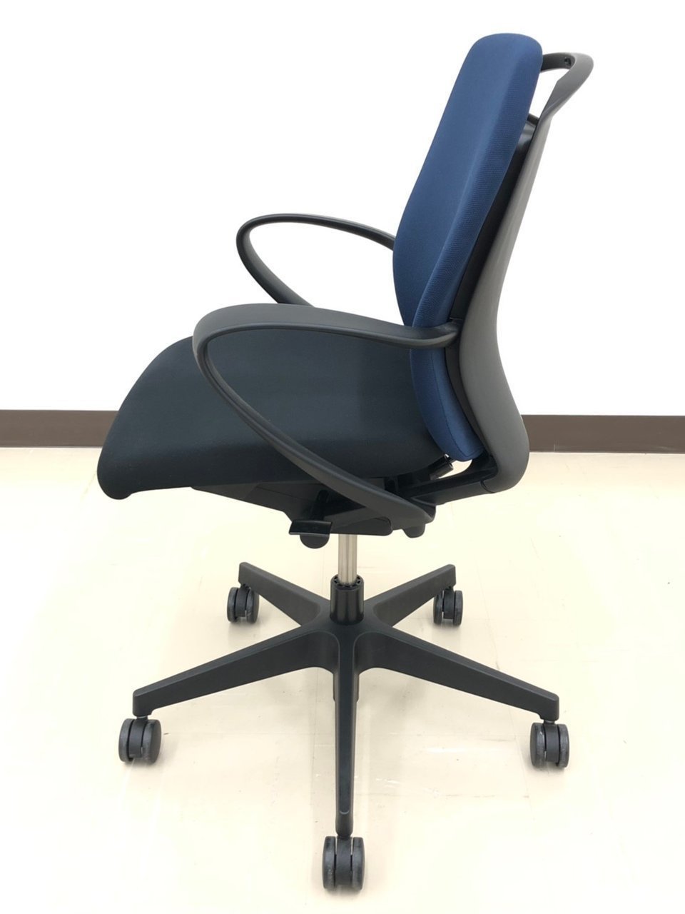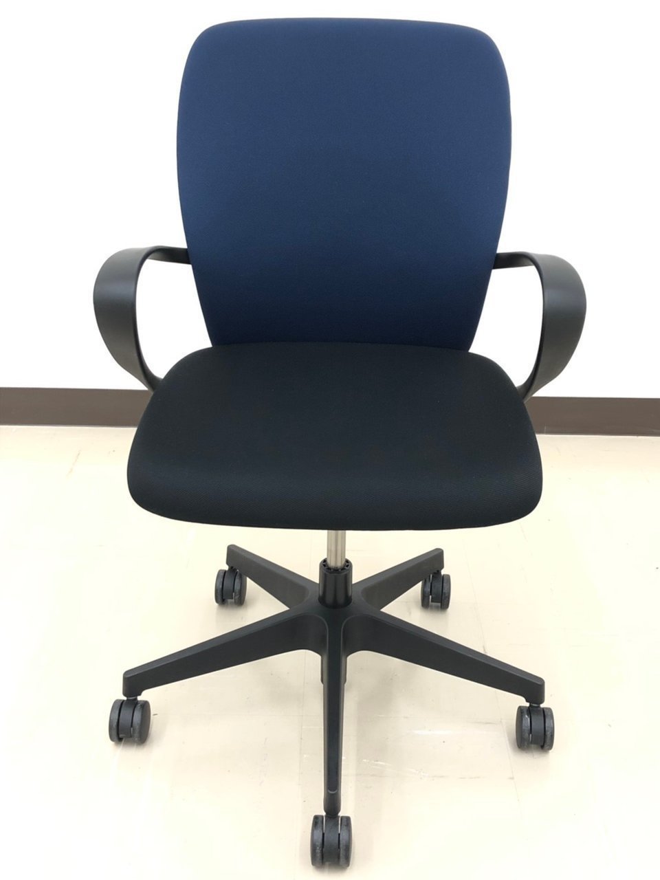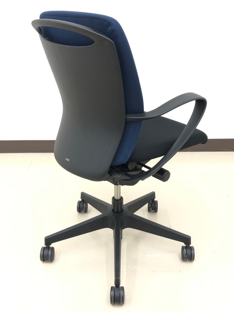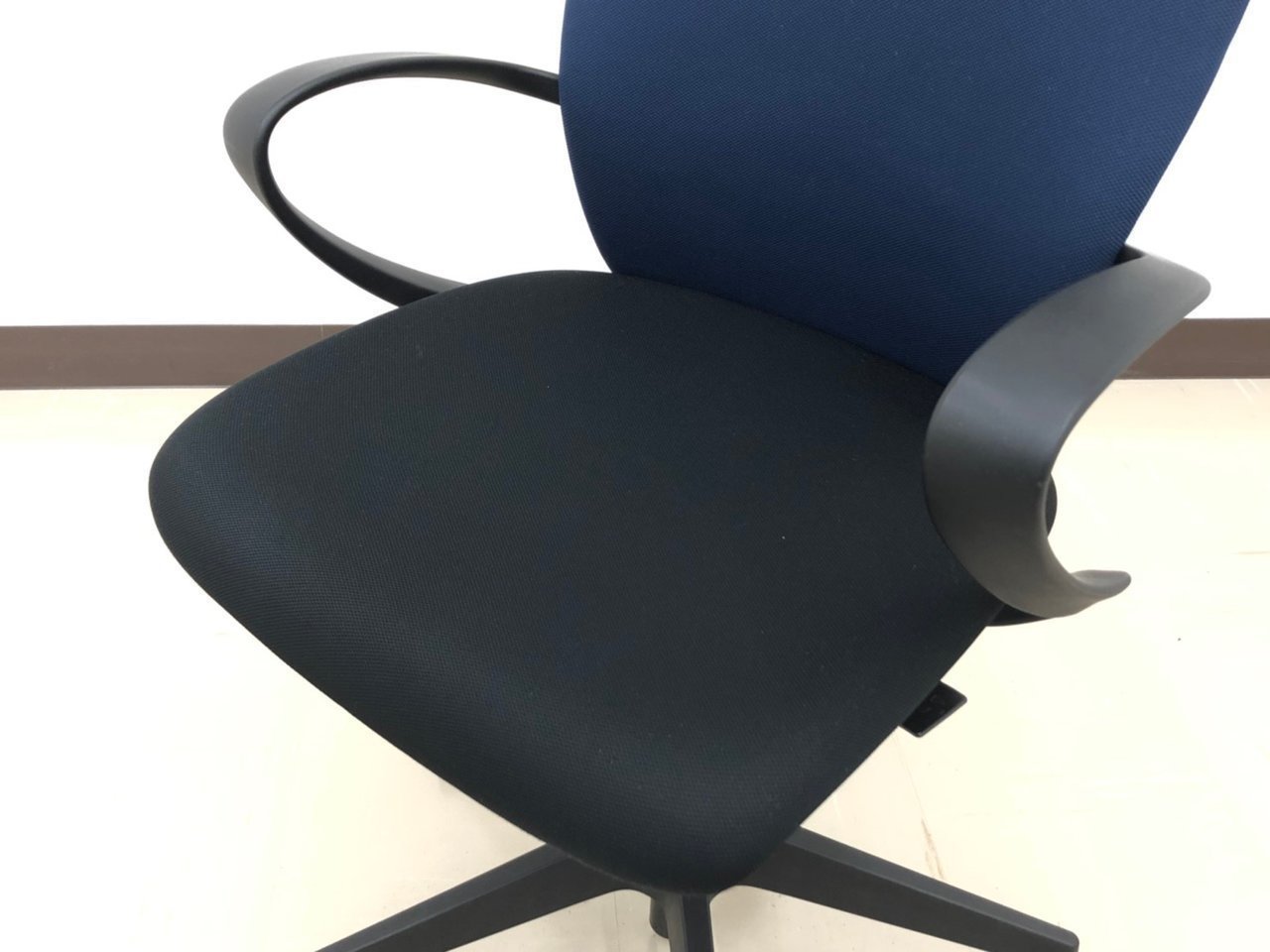【背もたれ・座面使用感のすれあり】イトーキ製 人気高いフルゴシリーズ ブラック×ネイビーブルー 肘付きローバックチェア!!【関西倉庫在庫】