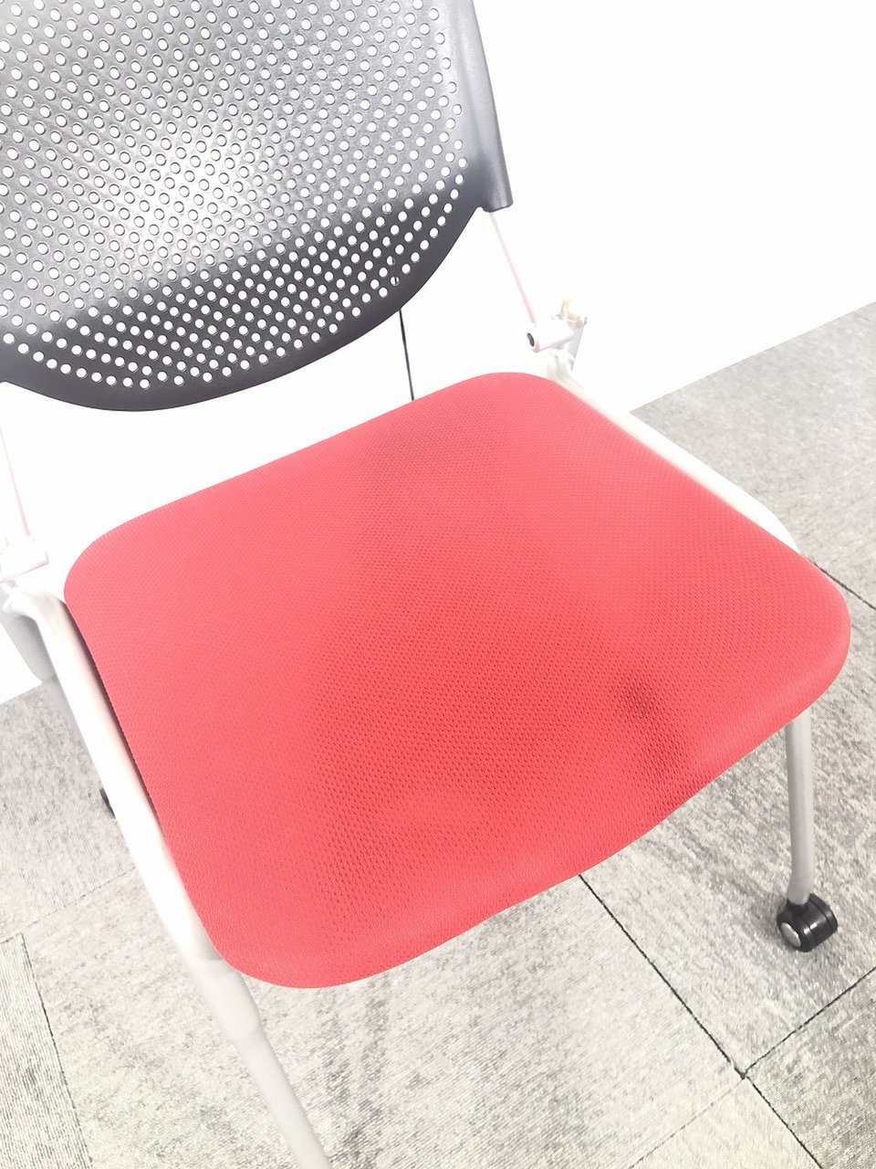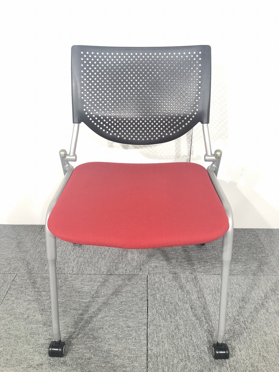 【4脚セット価格】【スタッキングチェア】オカムラ製 プロスタック レッドカラー キャスター付き 【収納】【軽量】- 京都東寺店