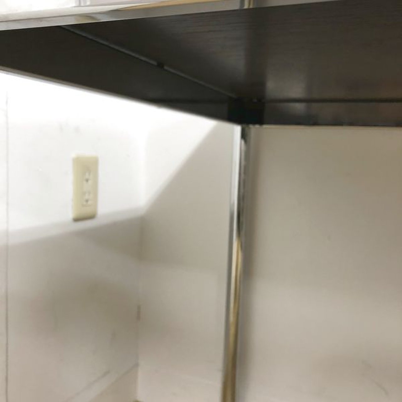 - かなり強い濃い黄ばみ・変色が商品全体にある。(例、天板、幕板、棚板、サイド部分、脚部等にある。)