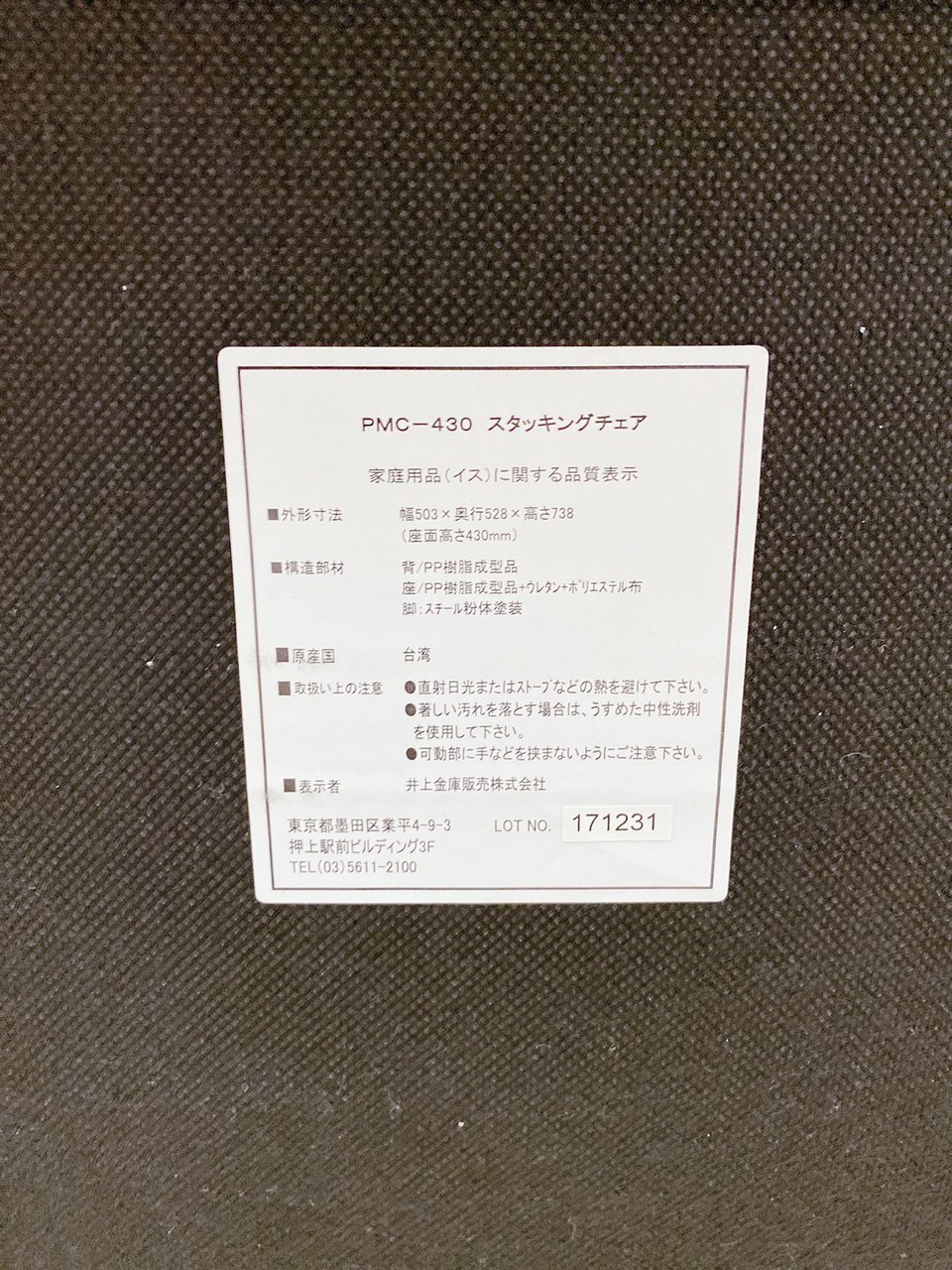 【中古】 PMCチェア 井上金庫 スタッキングチェア 320492