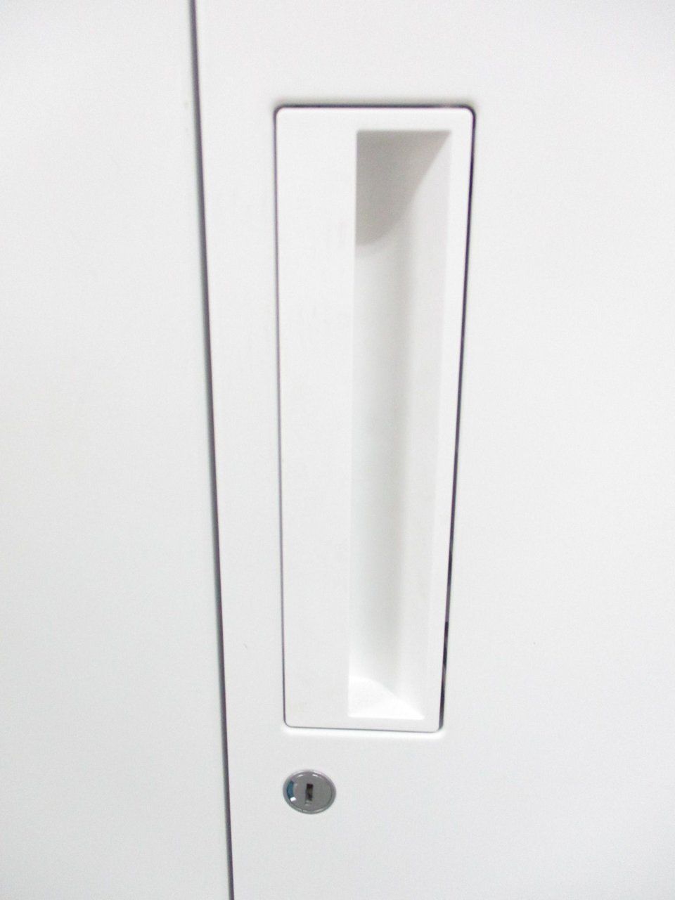【収納物がひとめで分かる両開き戸タイプ!】■コクヨ(KOKUYO)製 エディア(EDIA)シリーズ 両開き書庫 ローキャビネット H1130㎜ ■天板・ベース付 ■ホワイト ■シリンダー錠