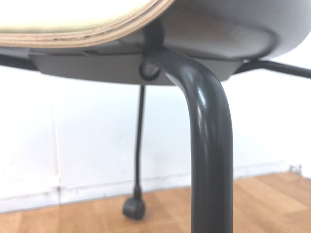 - かなり強い濃い黄ばみ・変色が商品全体にある。(例、座面・背もたれ、脚部等にある。)