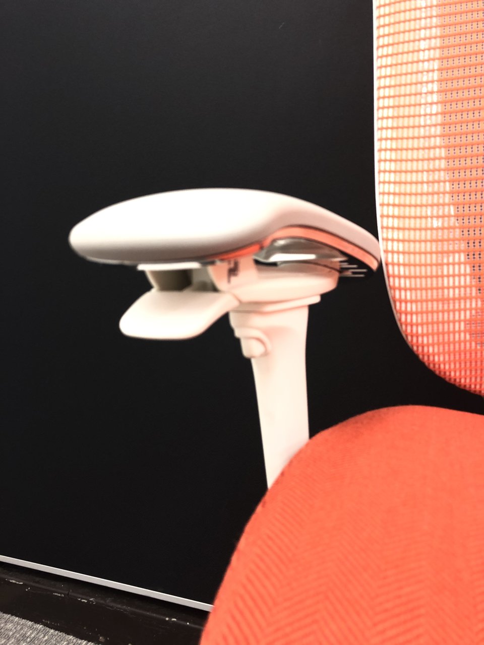 特筆すべきは、ひじ掛けの先端のレバーによってリクライニングの固定と解除、