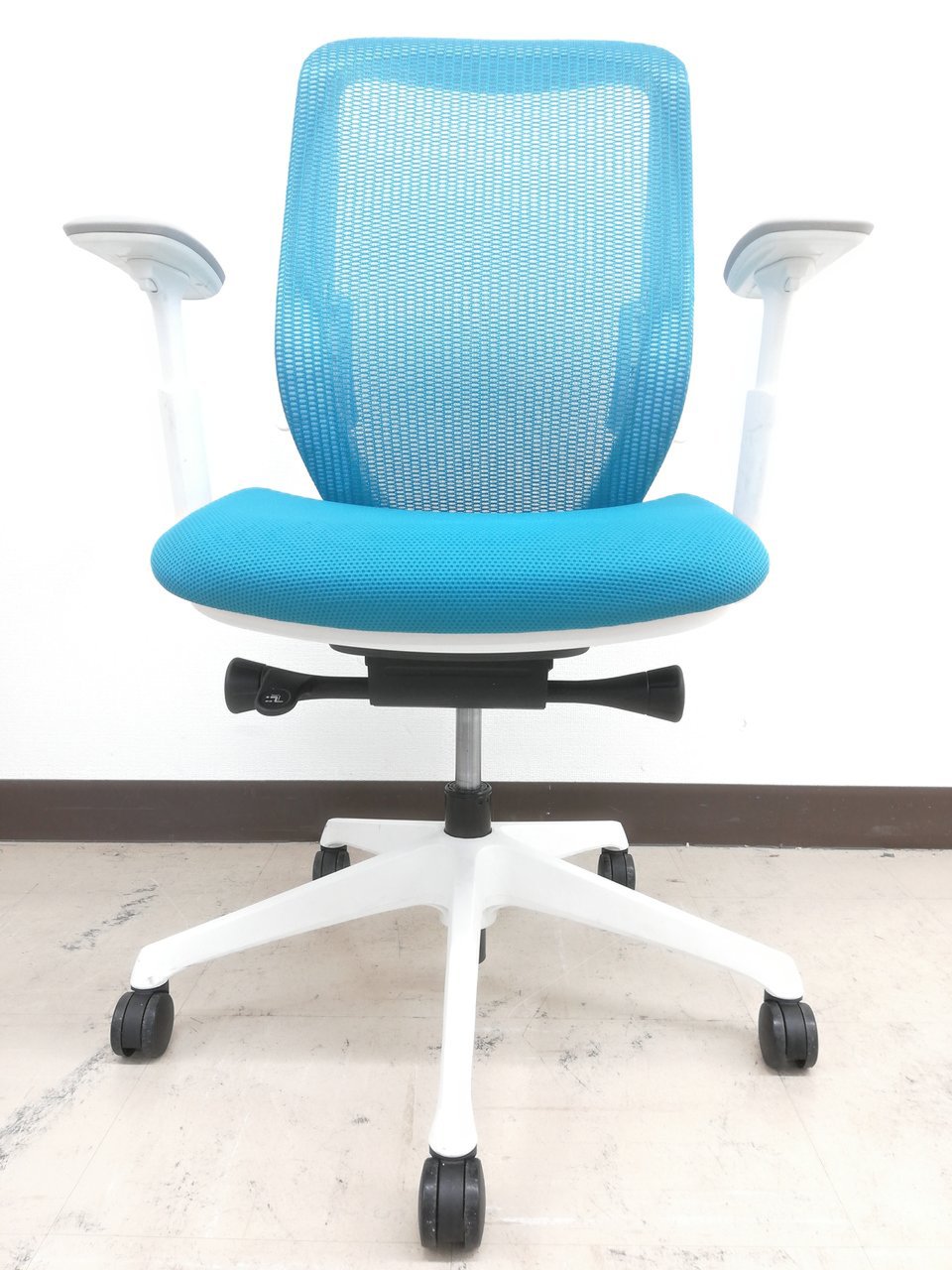【新品ヘッドレスト交換済み】オカムラ/シルフィー/ブルー/可動肘