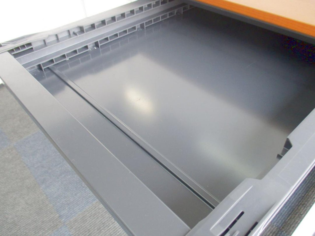 - 地震時、センター引出しが飛び出さないよう、ラッチ機構を装備。脚はデスクの横ズレを軽減させる設計になっています。