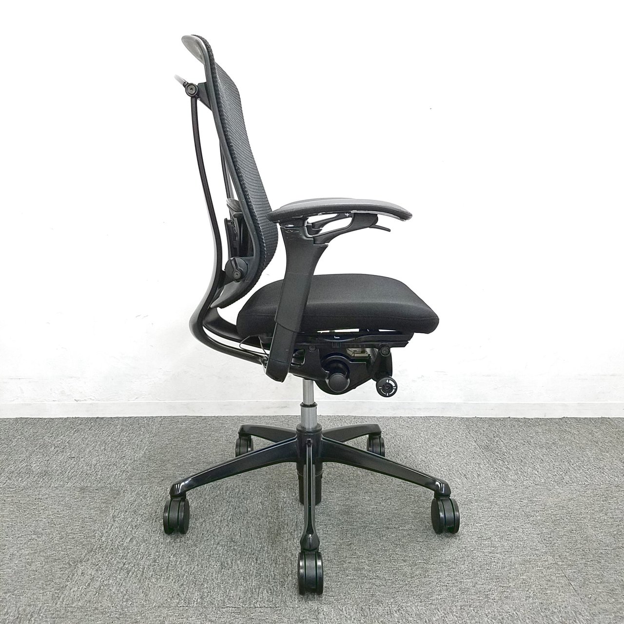 【世界で認められた革新的タスクチェア!人間工学に基づいた快適な座り心地を実現!】■オカムラ(okamura)製 コンテッサ(Contessa)チェア ハイバック 肘付き 背面メッシュ ■可動肘・ランバーサポート付 ■ブラック ※肘スレ有