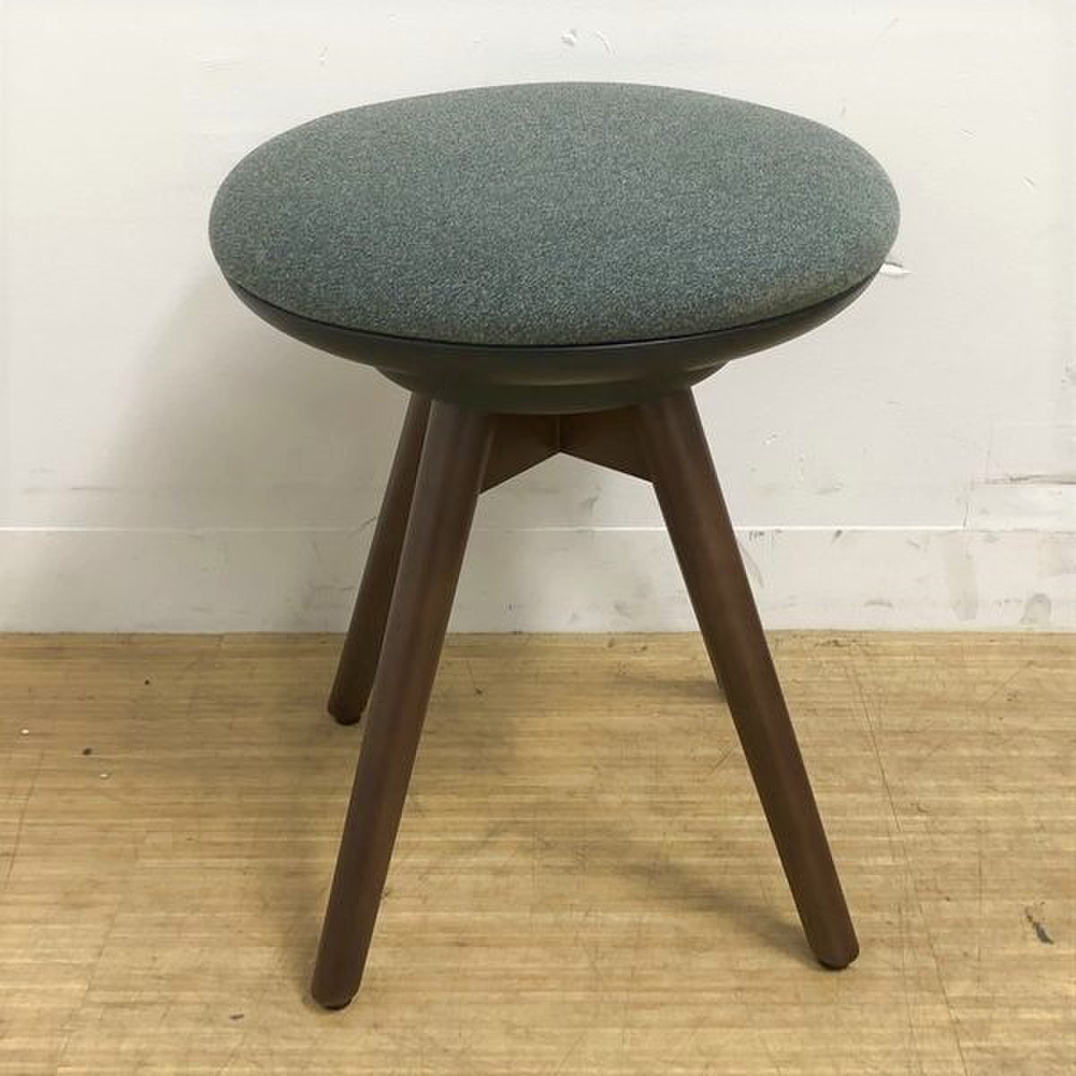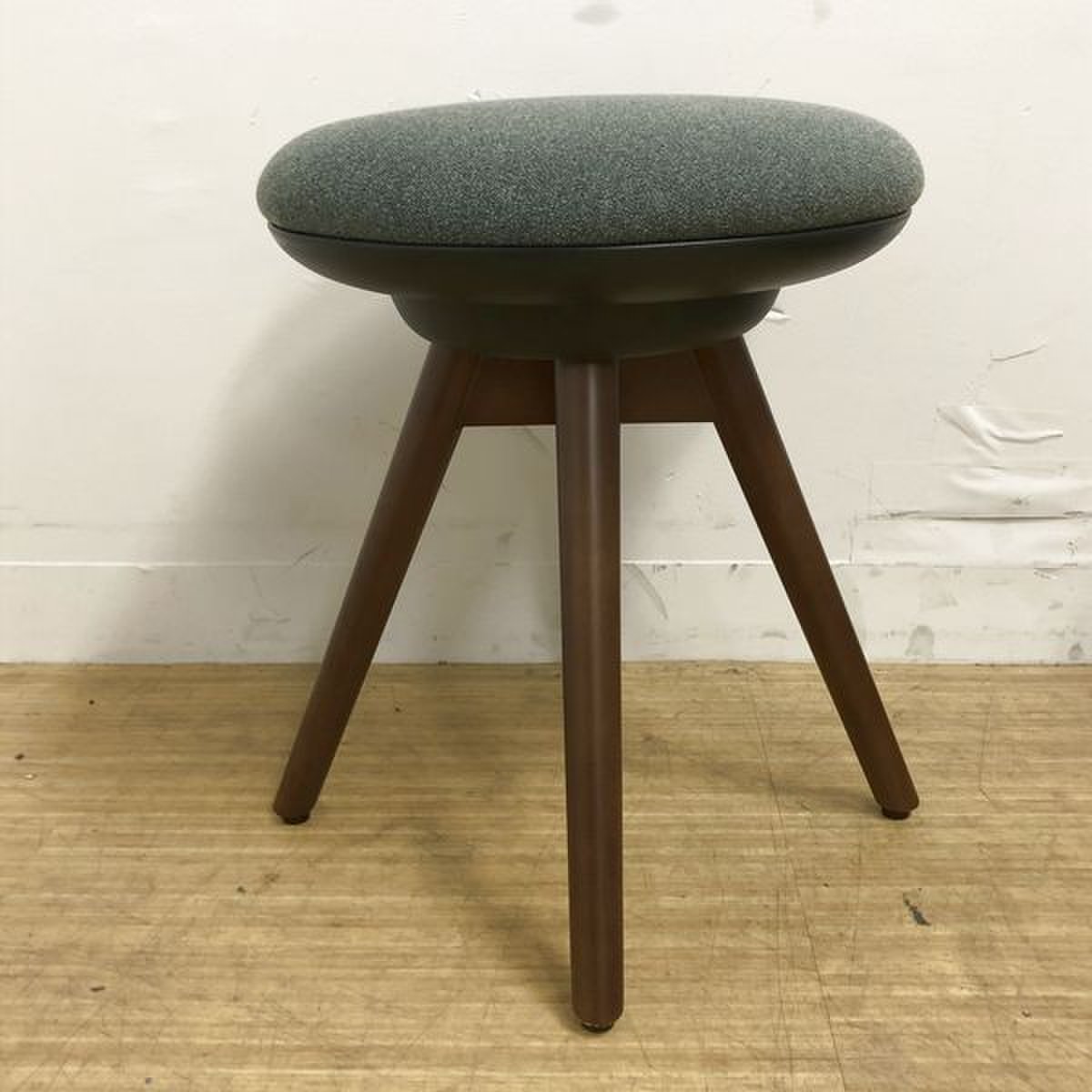 オカムラ ピルエット 木脚スツール 座:ダークグリーン(布インターロック)- 名古屋千種店