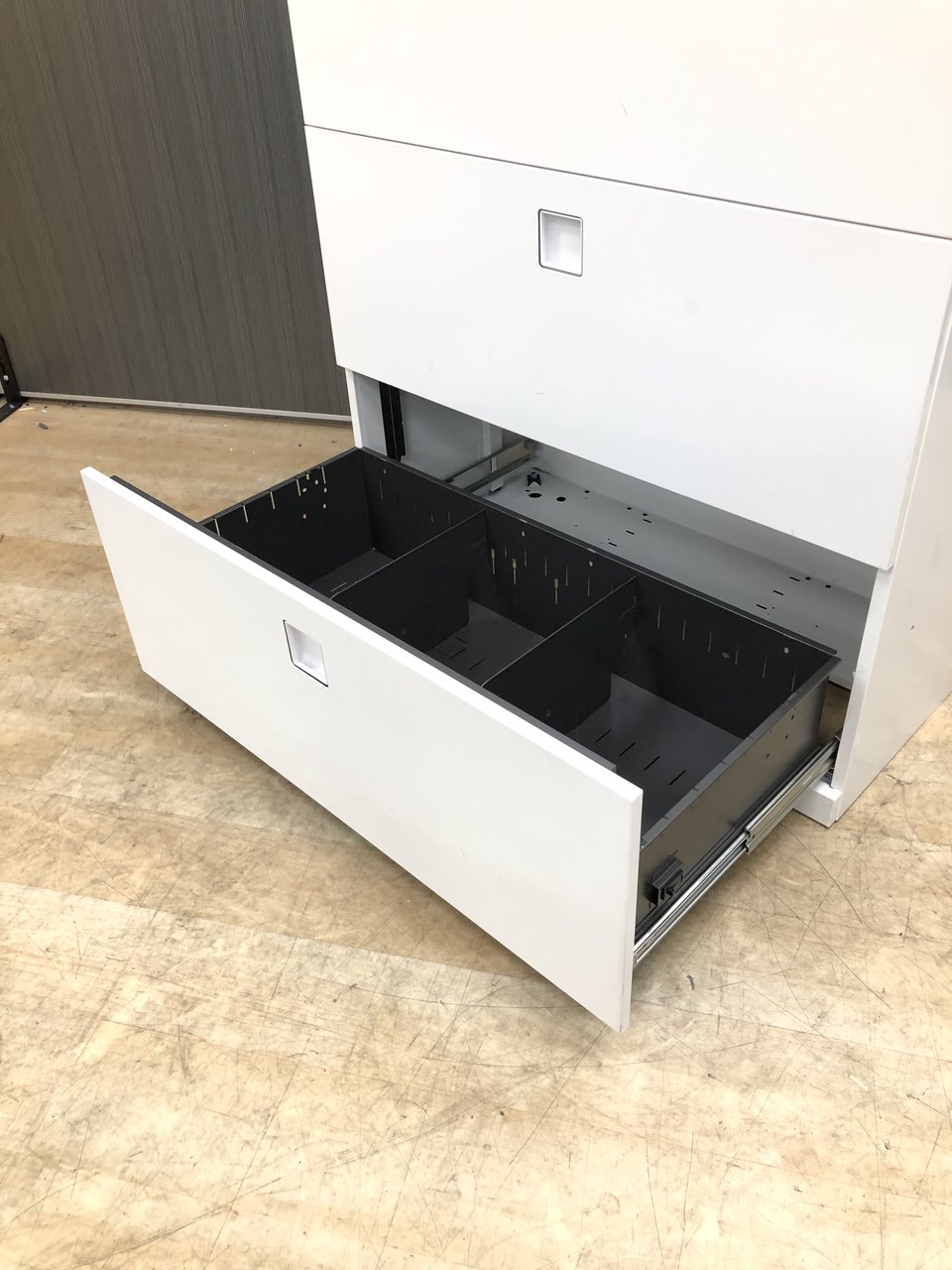 【オフィスの必需品!大容量の三段キャビネット!】■オカムラ(okamura)製 レクトラインシリーズ 3段ラテラル ローキャビネット ■天板/ベース付 ■シリンダー錠 ■ホワイト 【弊社使用欄:A01037187】