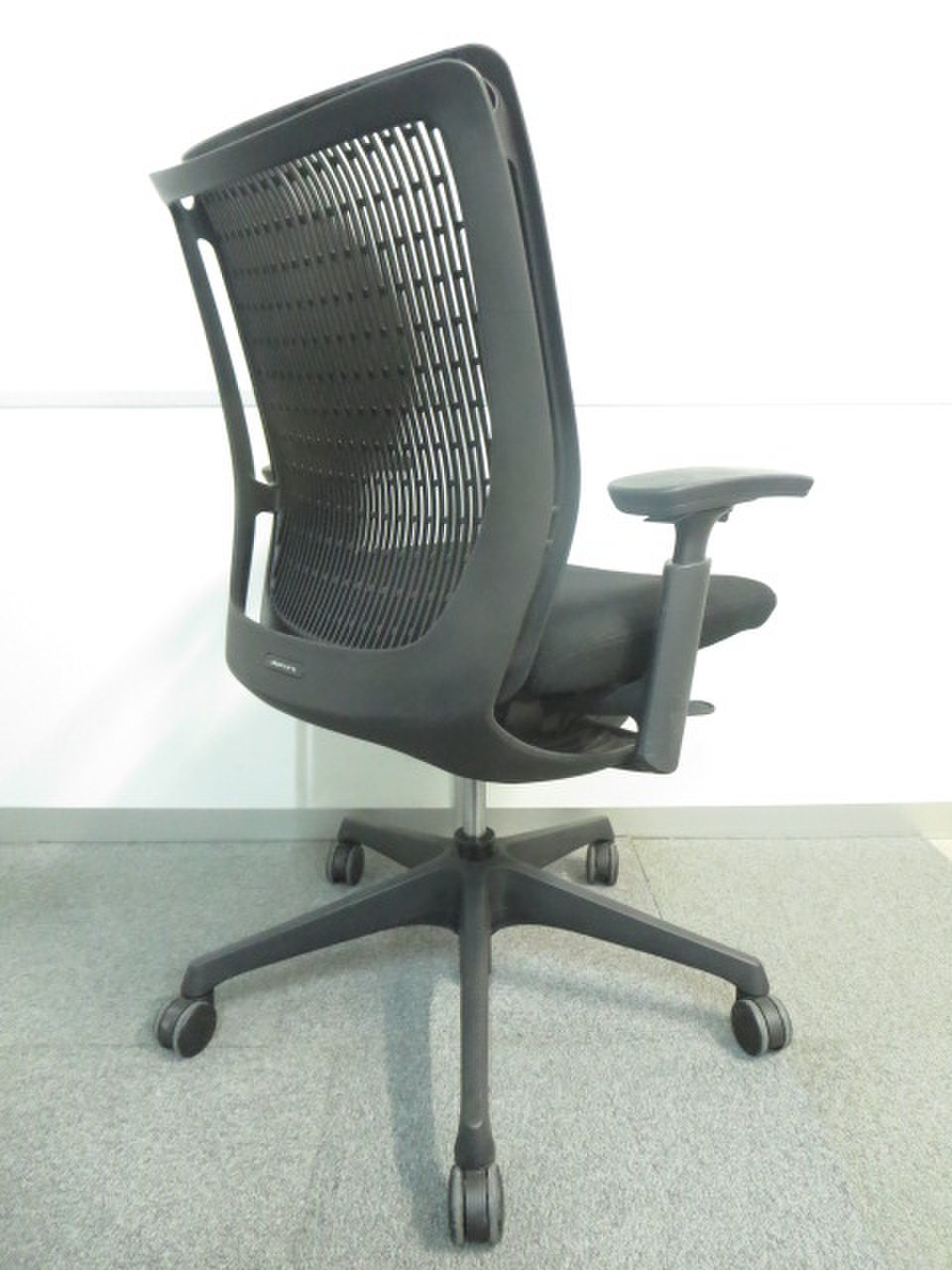 【人間工学に基づいた快適な座り心地!背によりかかるとバックシェルのグリッドが変形し、やさしくワーカーの身体を支えます!】■オカムラ(okamura)製 ヴィスコンテ(Visconte)チェア 肘付きローバック ■可動肘 ■色:ブラック【IB】
