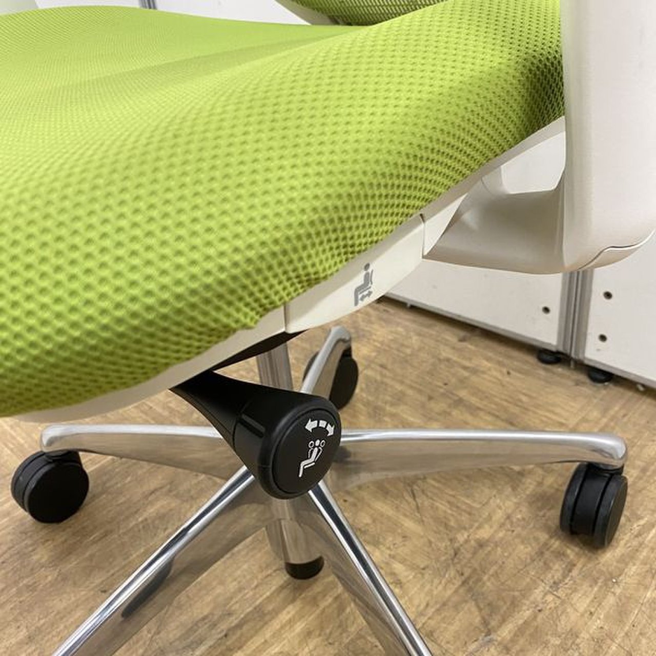 - 座面右下のレバーをスライドさせる「クイックスライドオペレーション」で、リクライニング反力を調整できます。強さの状態が視覚的にわかるため、直感的に操作がおこなえます。