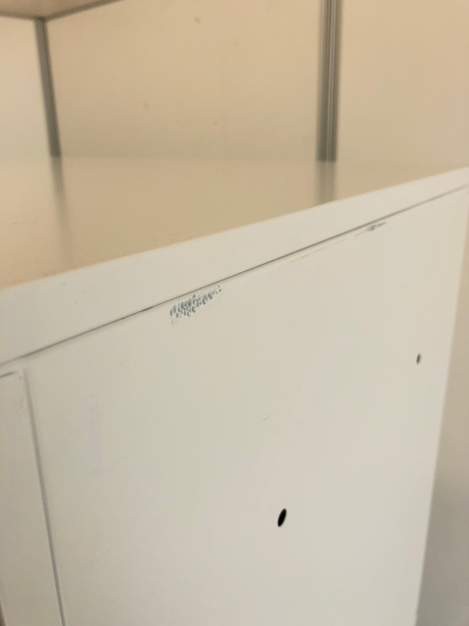 - 目立つ箇所あり傷・凹みが多数、深い傷・凹みが一部ある。(例、天板、正面、背部、サイド部分にある。)