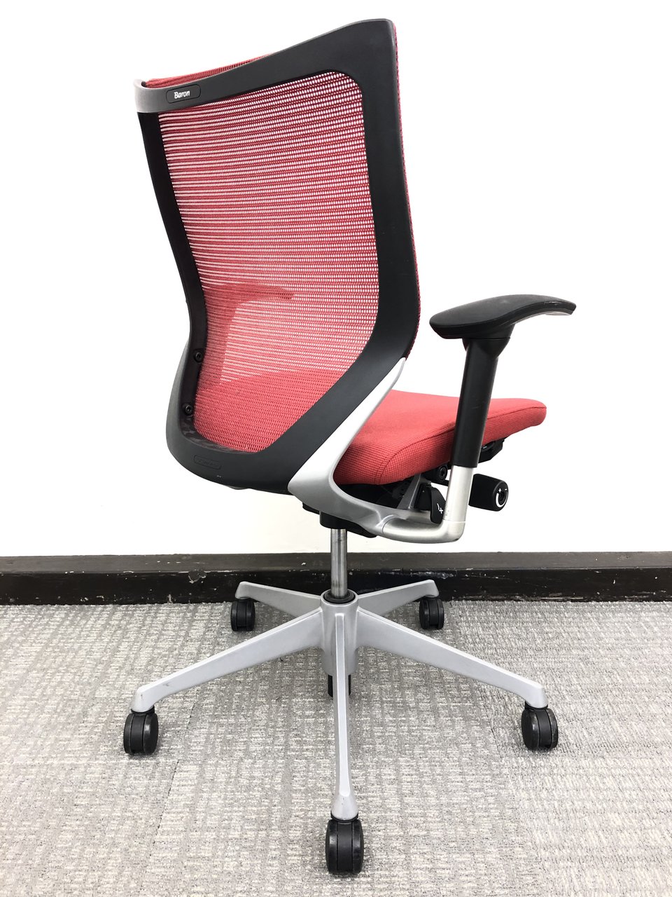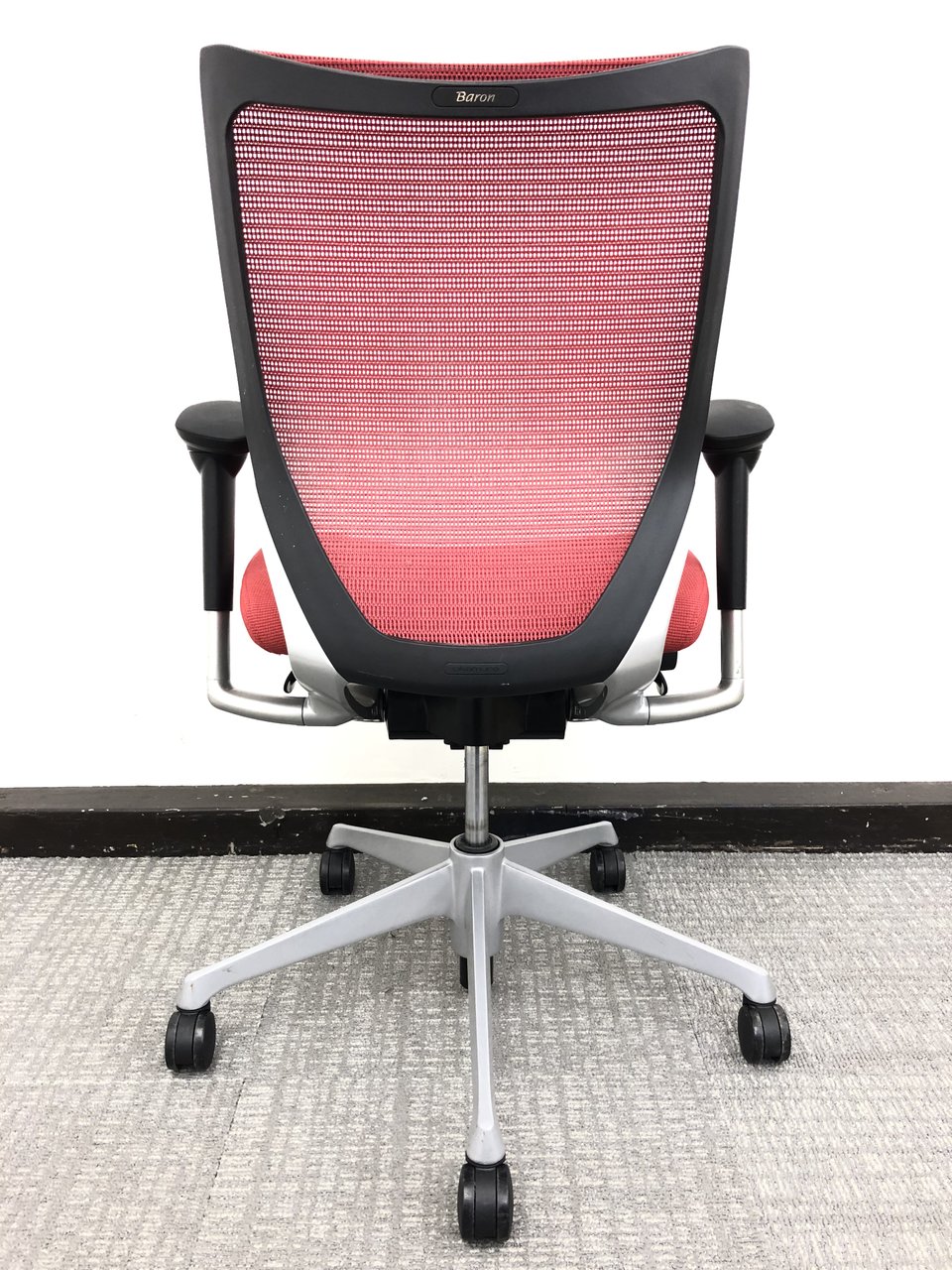 発売当時、既に人気を博していたオカムラの高級チェア、コンテッサから手元で座高調整ができるスマートオペレーション機能を取り除くなどしてリーズナブルにしたのがバロンです。その際に少しだけコンパクト化されました。そのことが、日本人の体格、日本のオフィス、家庭環境に適し、国内で多くのシェアを獲得する要因の一つになったのではないかと思います。