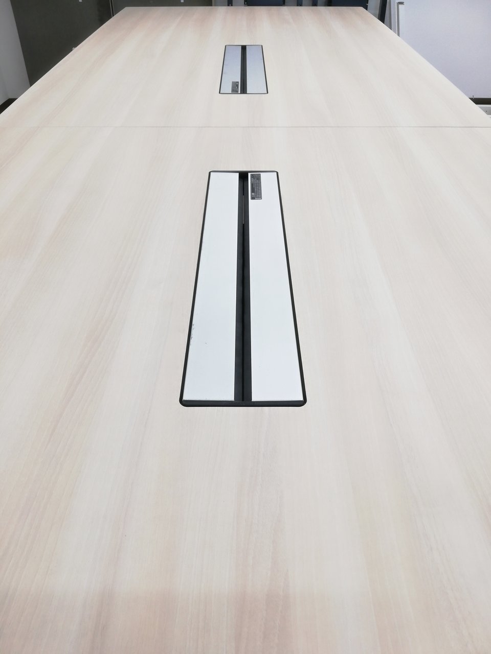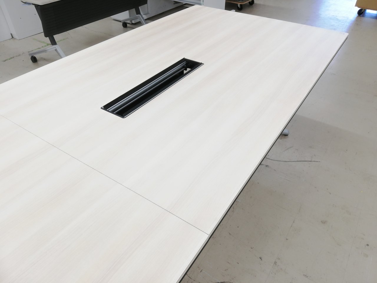 ぶ厚い天板には鮮やかな木目調の柄。横幅3600mmの大きさ。これは快適です。。会議がはかどること間違い無しですよ~!