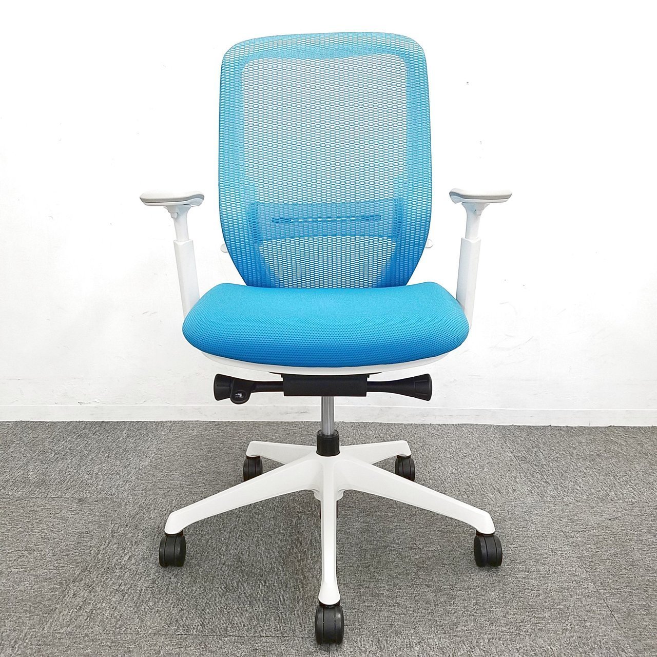 《現物写真だから安心!》オカムラ製の人気オフィスチェア【シルフィーメッシュ/可動肘/ヘッドレスト付き/ブルーグリーン】が先着1名様ご案内可能です!