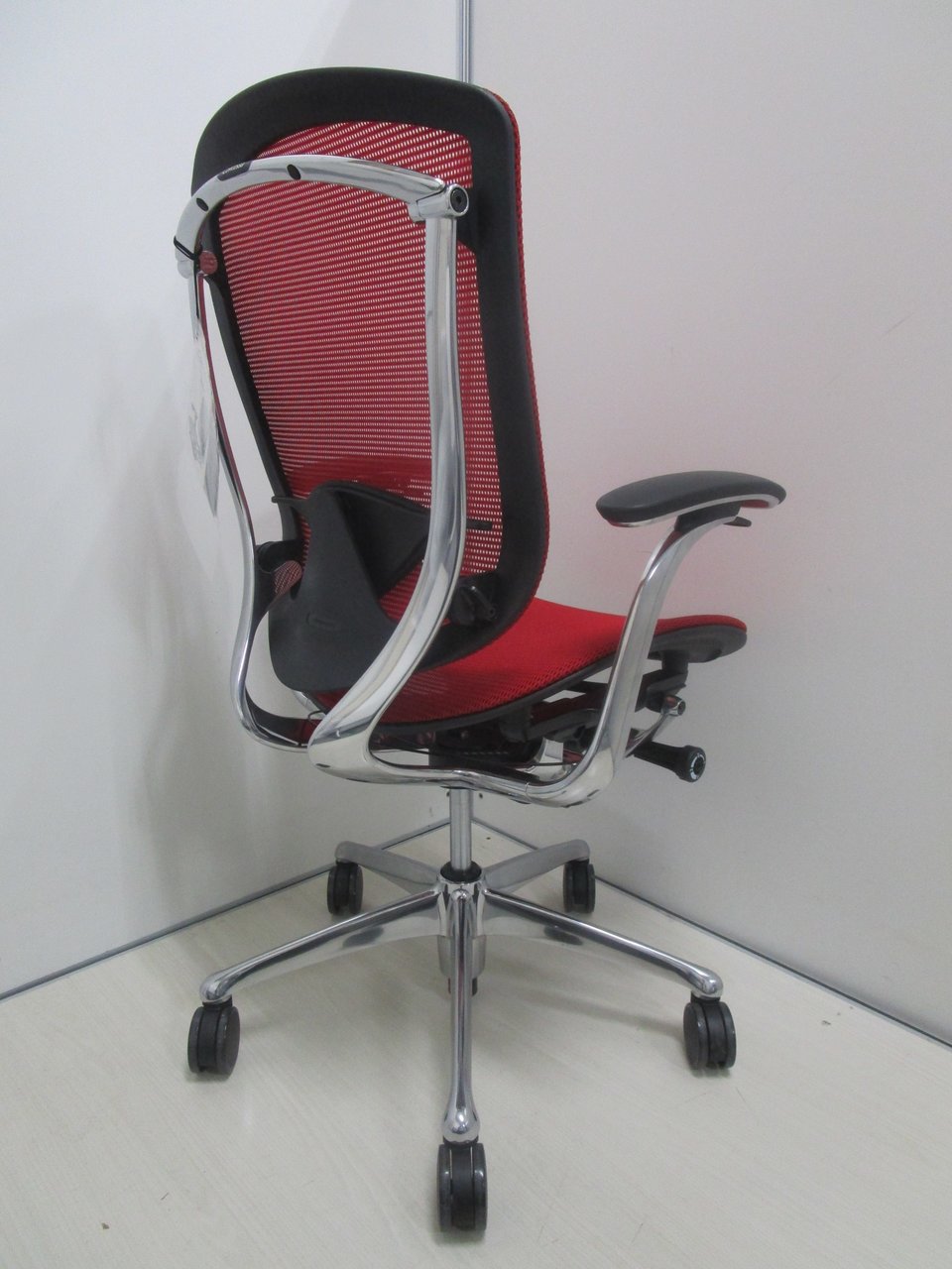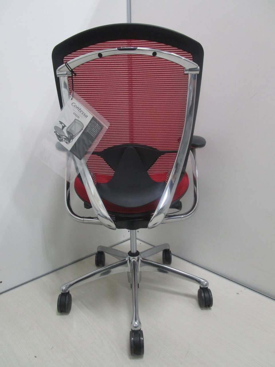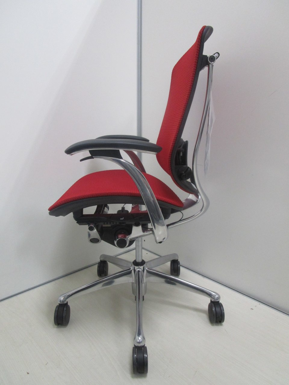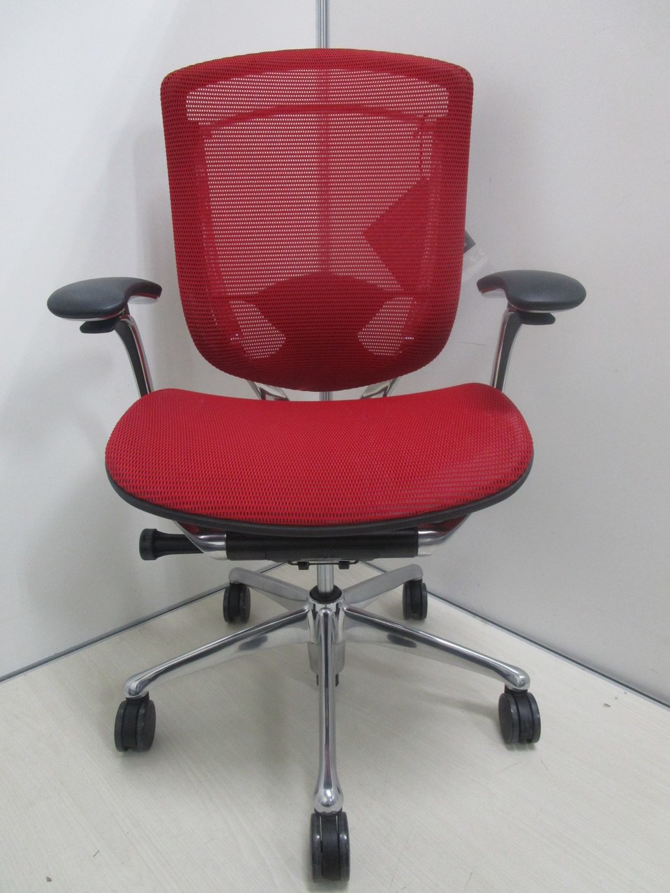 【2019年製の新古品(未使用品)】【固定肘】オカムラ/コンテッサ/レッド【燃えるような赤が映えます!】- 池袋店