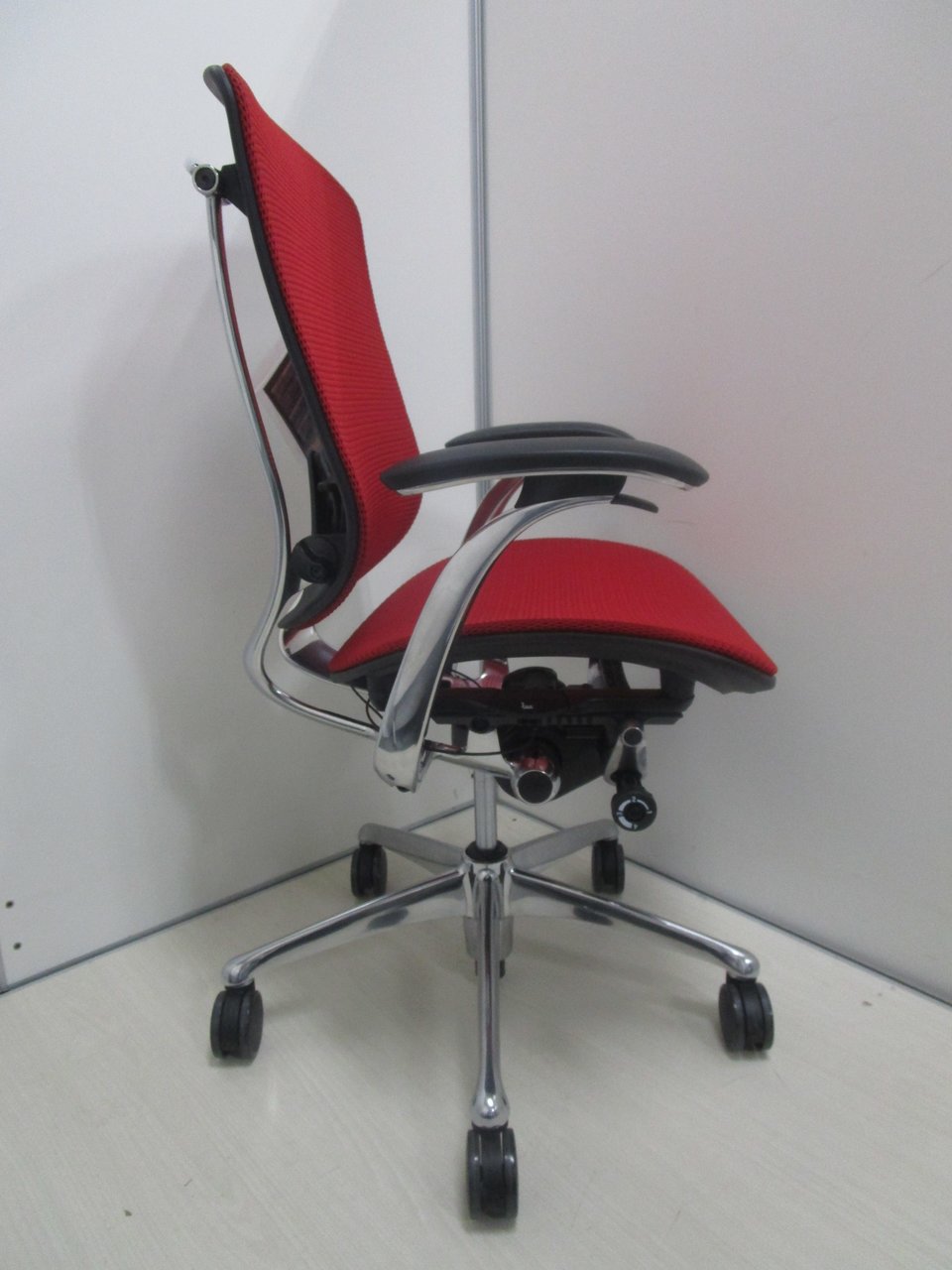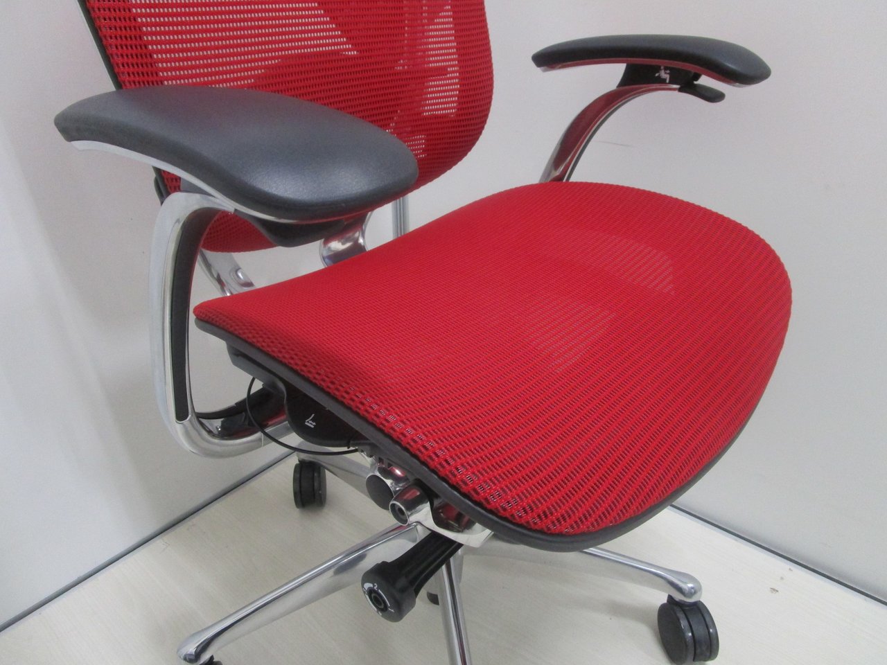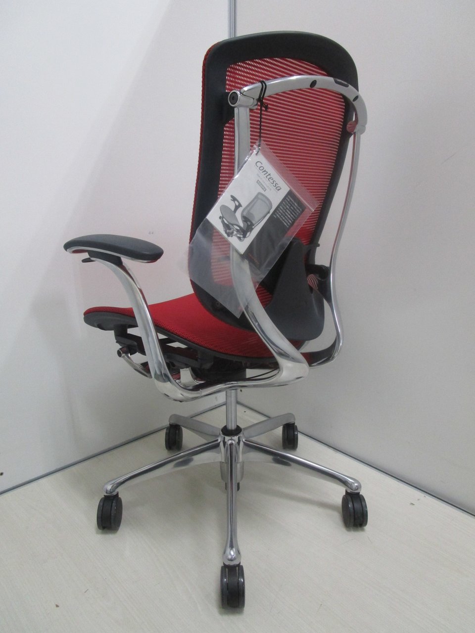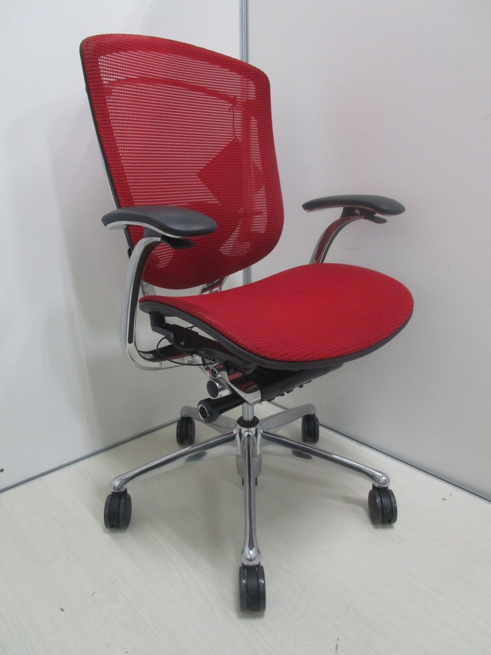 【2019年製の新古品(未使用品)】【固定肘】オカムラ/コンテッサ/レッド【燃えるような赤が映えます!】- 池袋店
