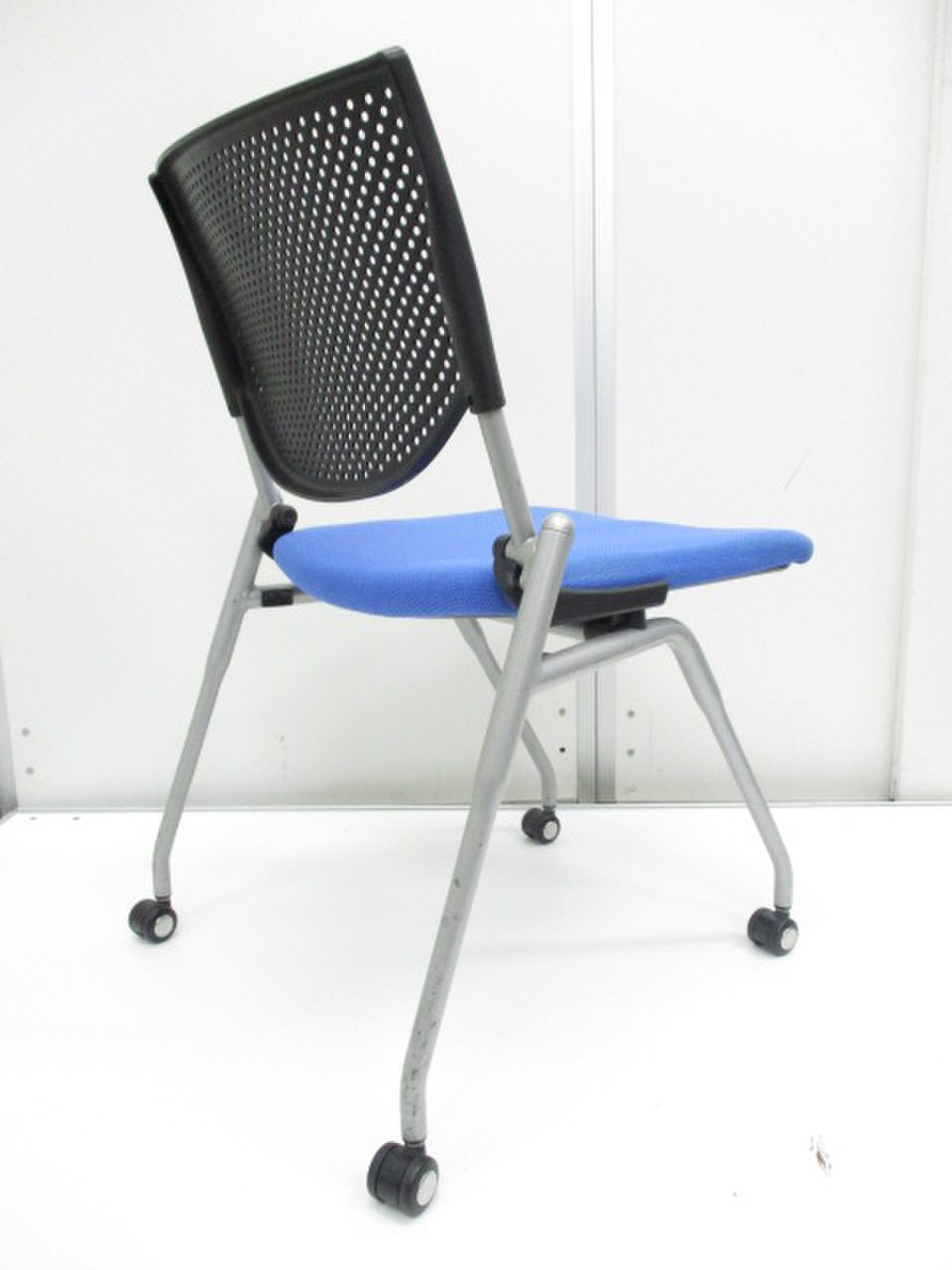 【会議室にピッタリ!コンパクト設計で収納がしやすい!】■オカムラ プロスタックシリーズ ネスティングチェア ミディアムブルー ■フレキシブルに使えるキャスター付!【在庫入替セール品!(本在庫限定価格)】