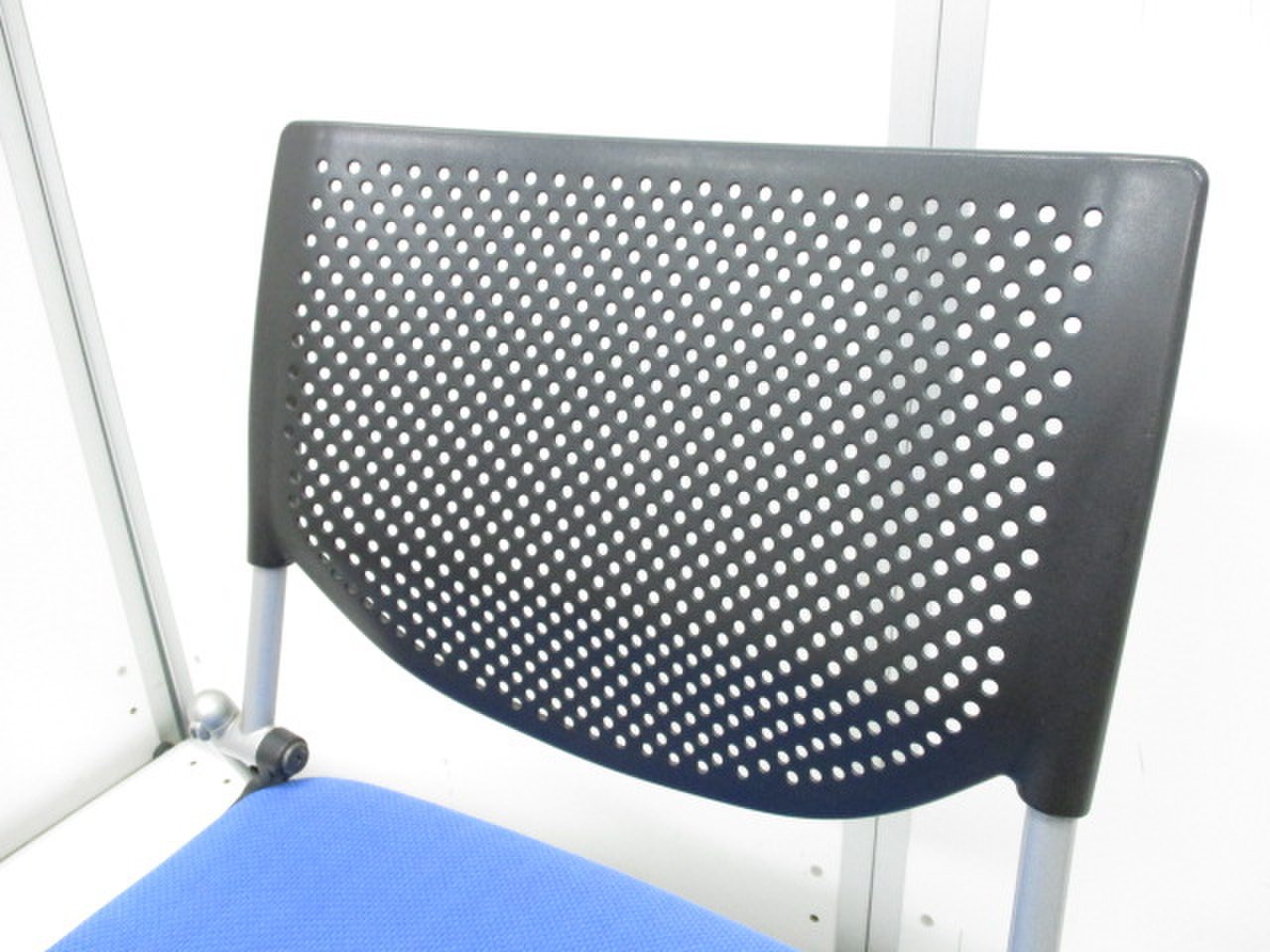 【座面使用感あり】オカムラ製 プロスタック プレーンタイプ 背面樹脂メッシュ ブルー×ブラック コンパクトに積み重ねて収納 ネスティングチェア!!