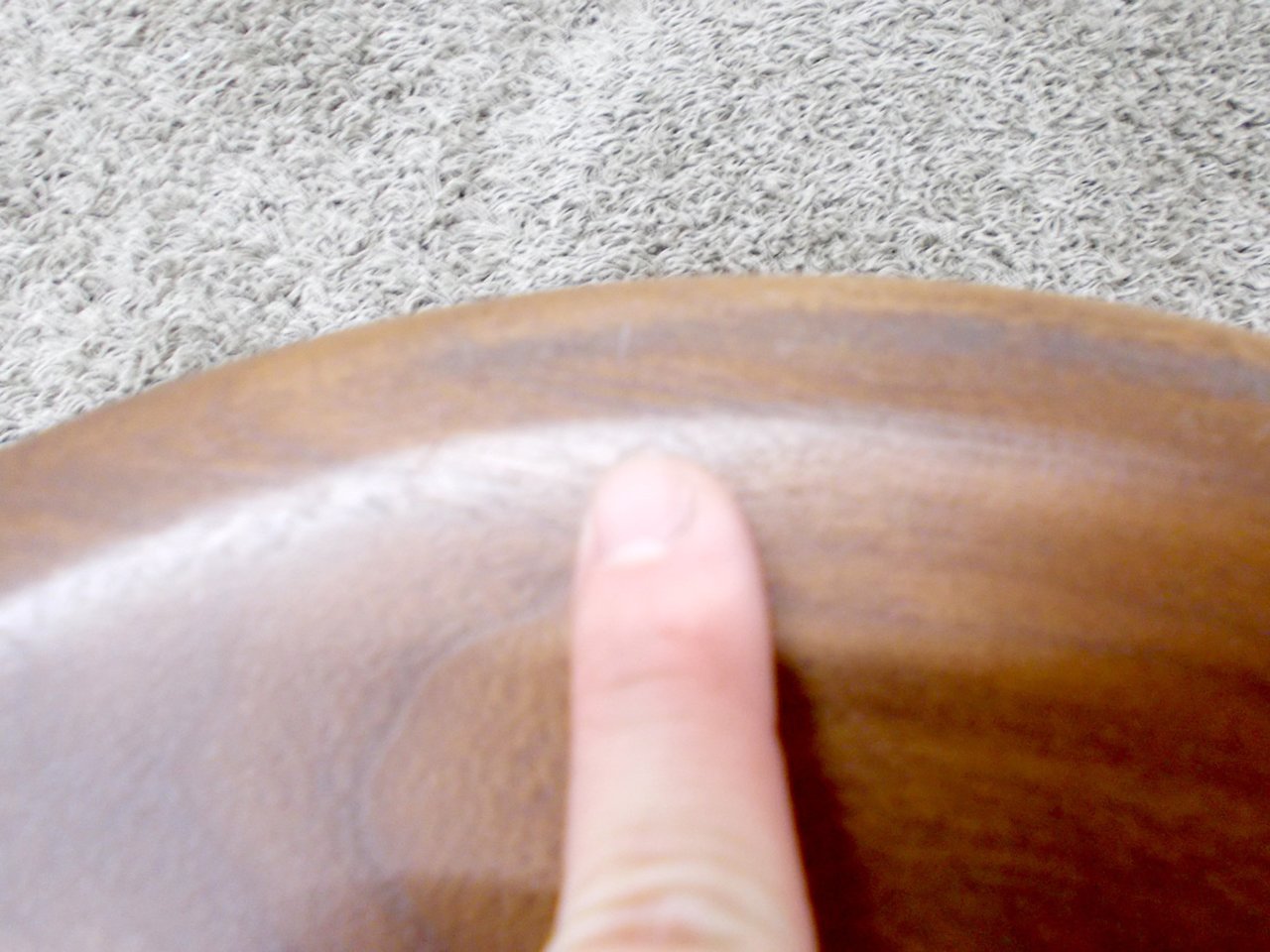 - かなり強い濃い黄ばみ・変色が商品全体にある。(例、座面・背もたれ、脚部等にある。)