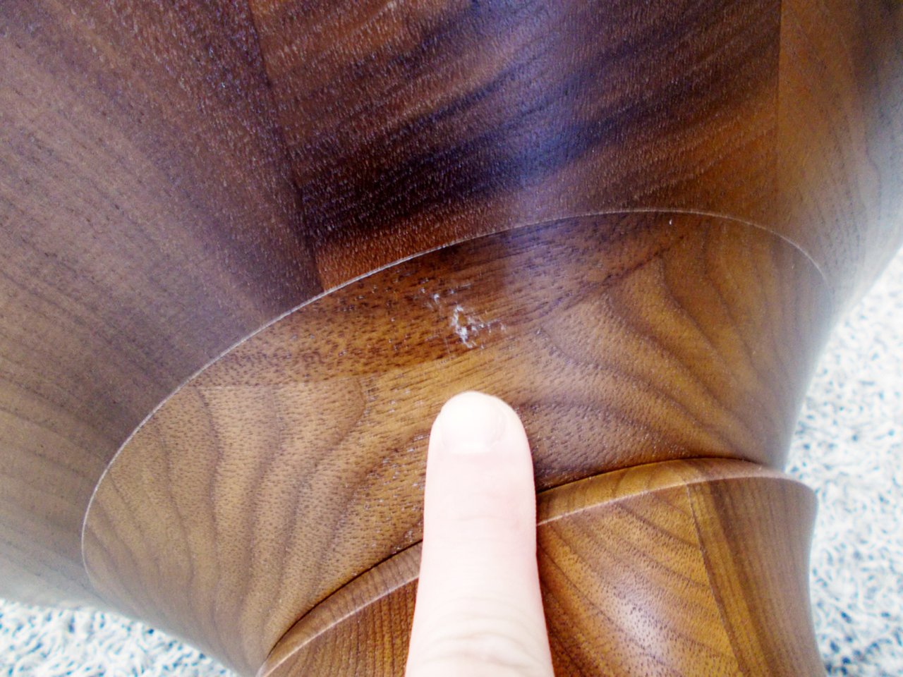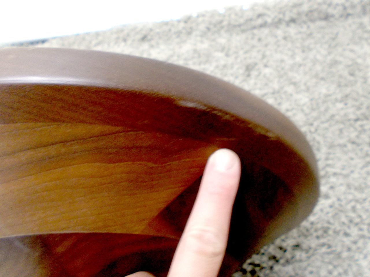 - かなり強い濃い黄ばみ・変色が商品全体にある。(例、座面・背もたれ、脚部等にある。)