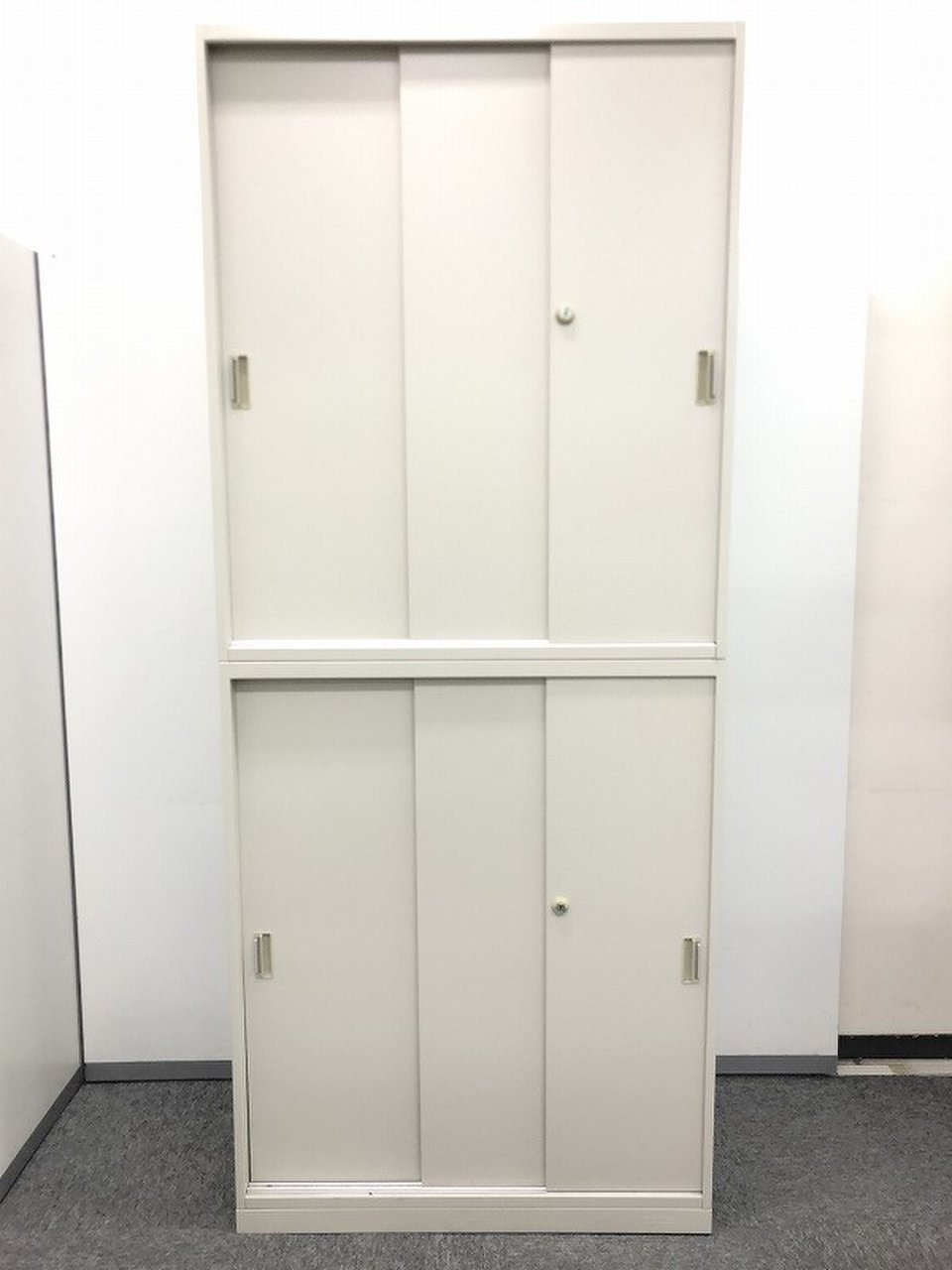 【導線確保できます!】オカムラ製 42型 3枚引き戸書庫セット【書類の取り出し楽々!】【RP】- 品川・三田店