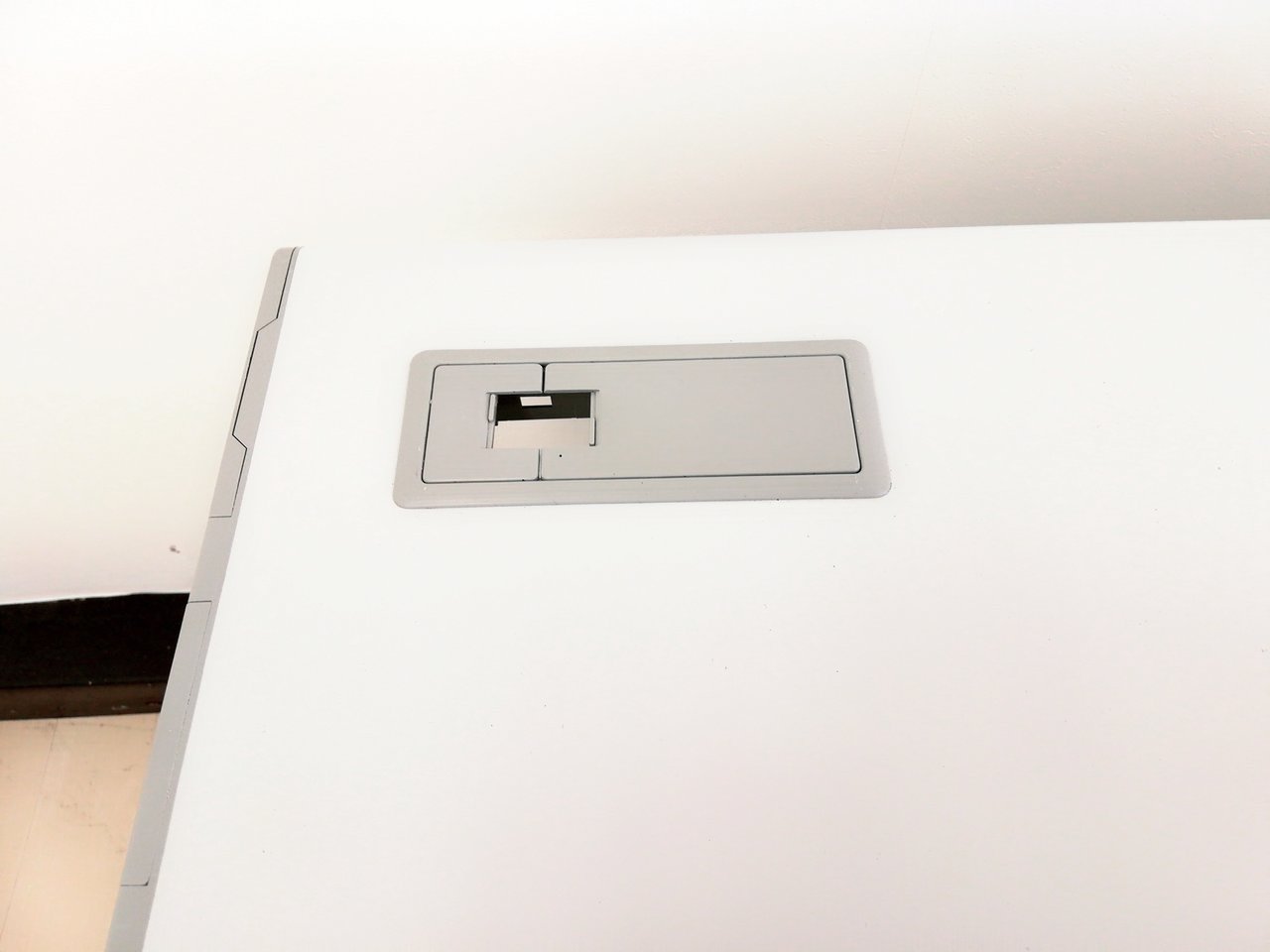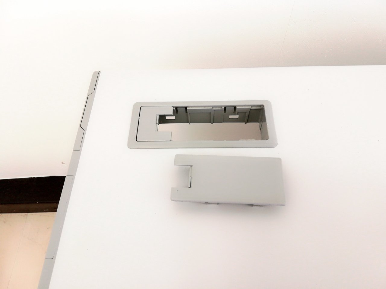 - 天板にコードホールが2ヵ所あり、レイアウト自在です。天板と幕版の間に30mmのすき間があり、対向配線も容易です。