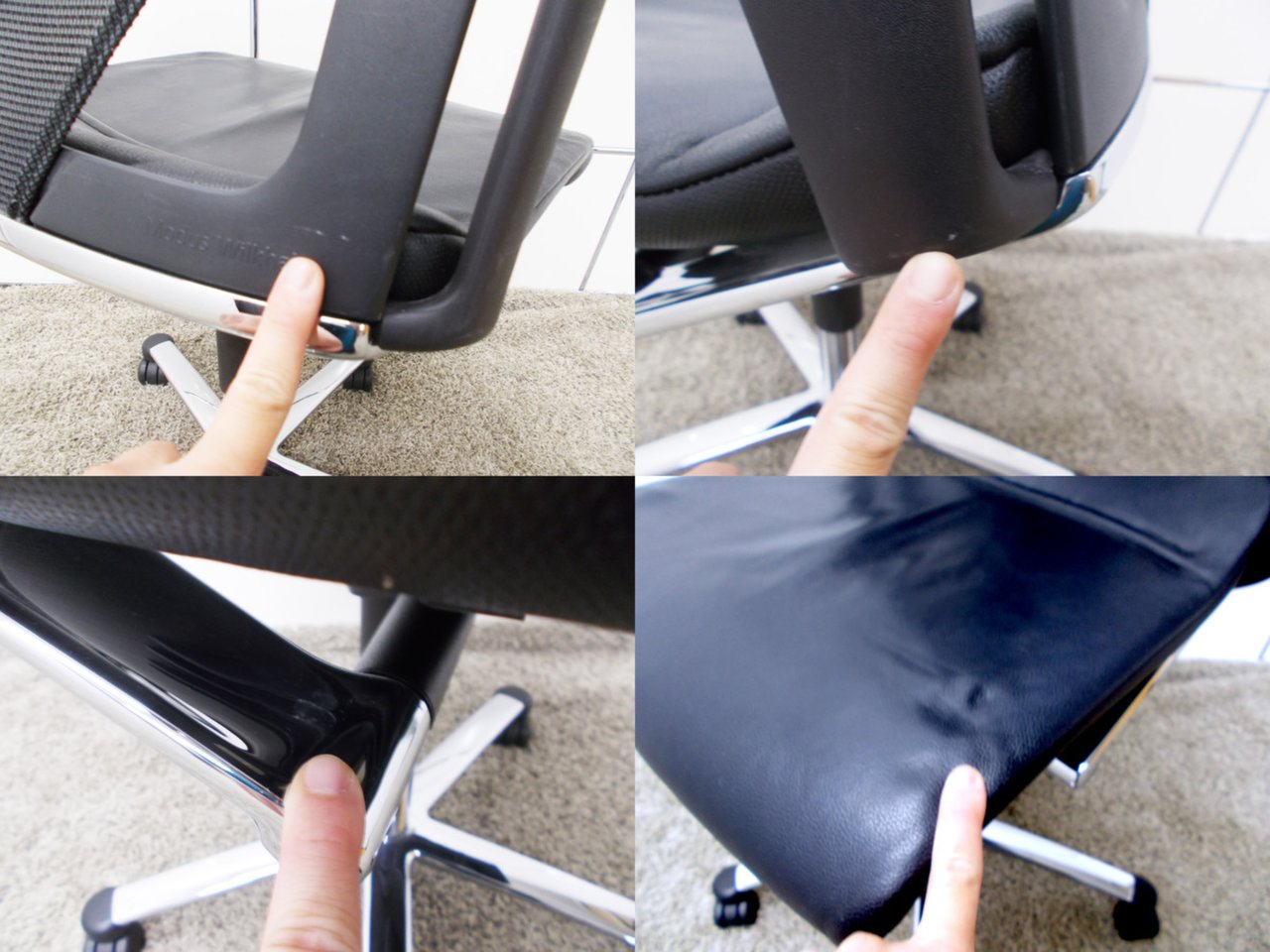 - 目立つ箇所あり傷・破れ・ほつれ・へたり・しわが多数または深い傷・破れ・ほつれ・へたり・しわが一部ある。※座面・背もたれ、シェル、脚部等にある。