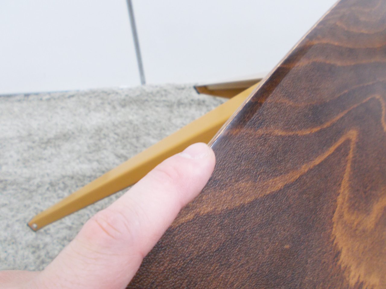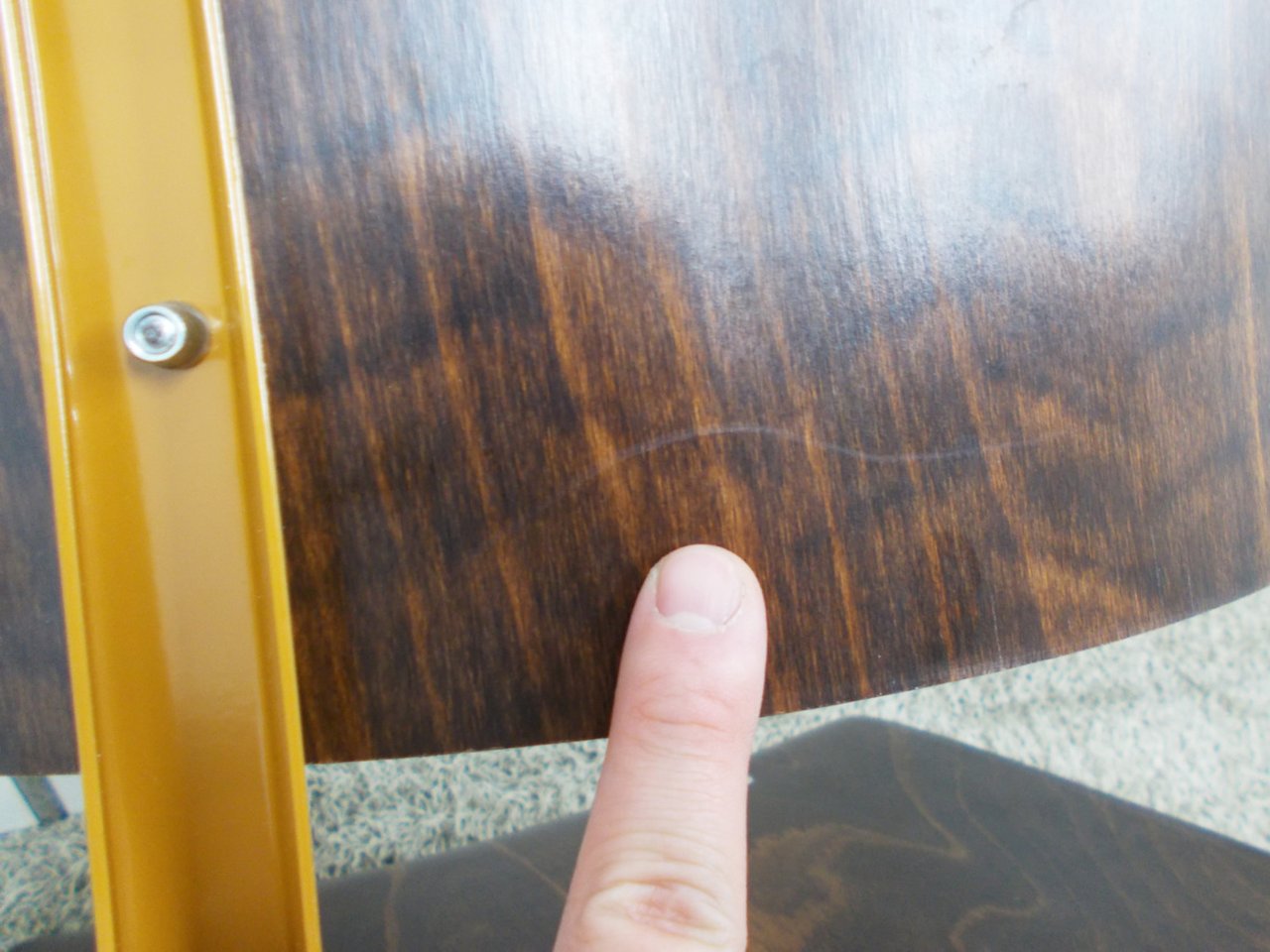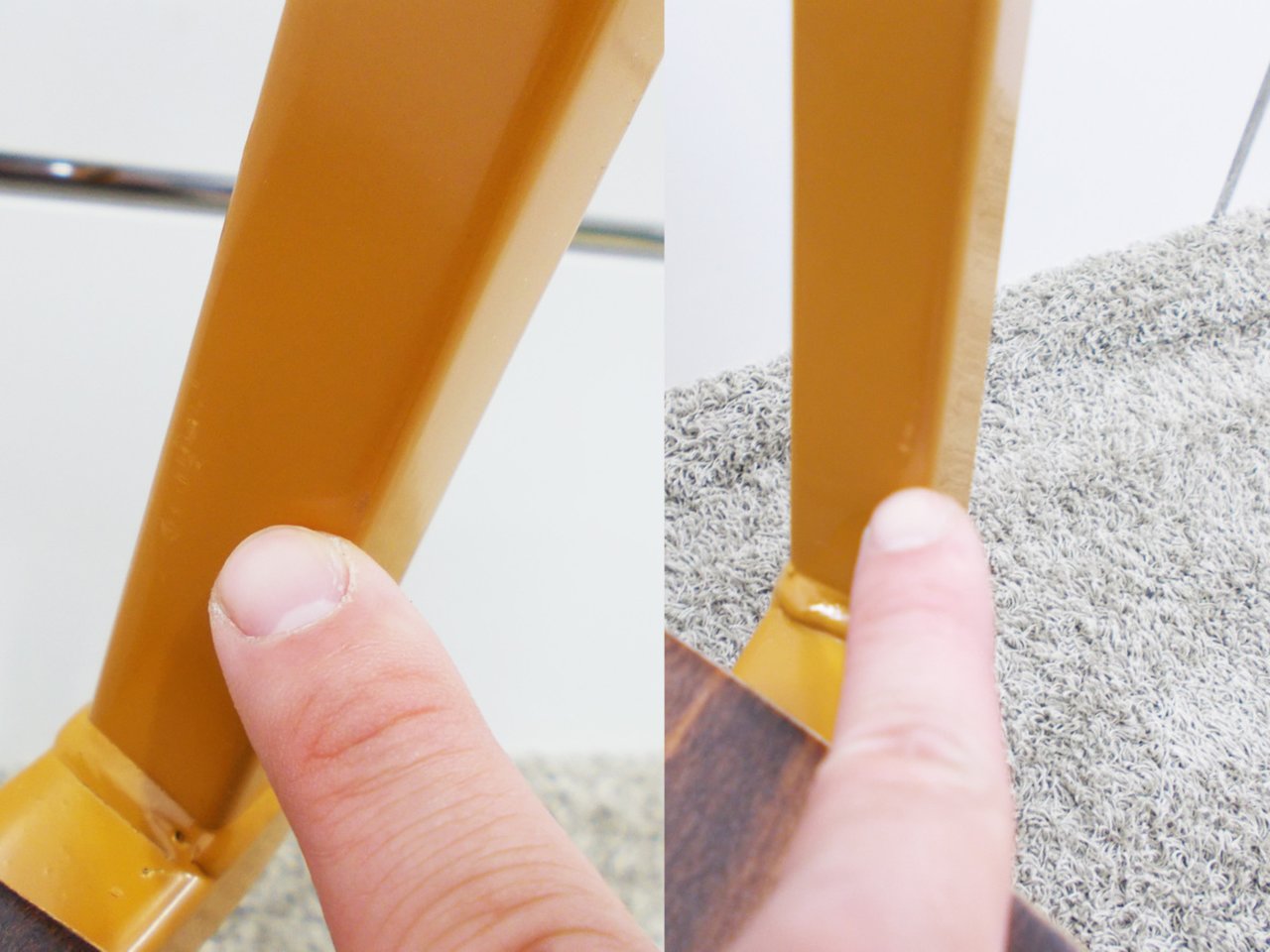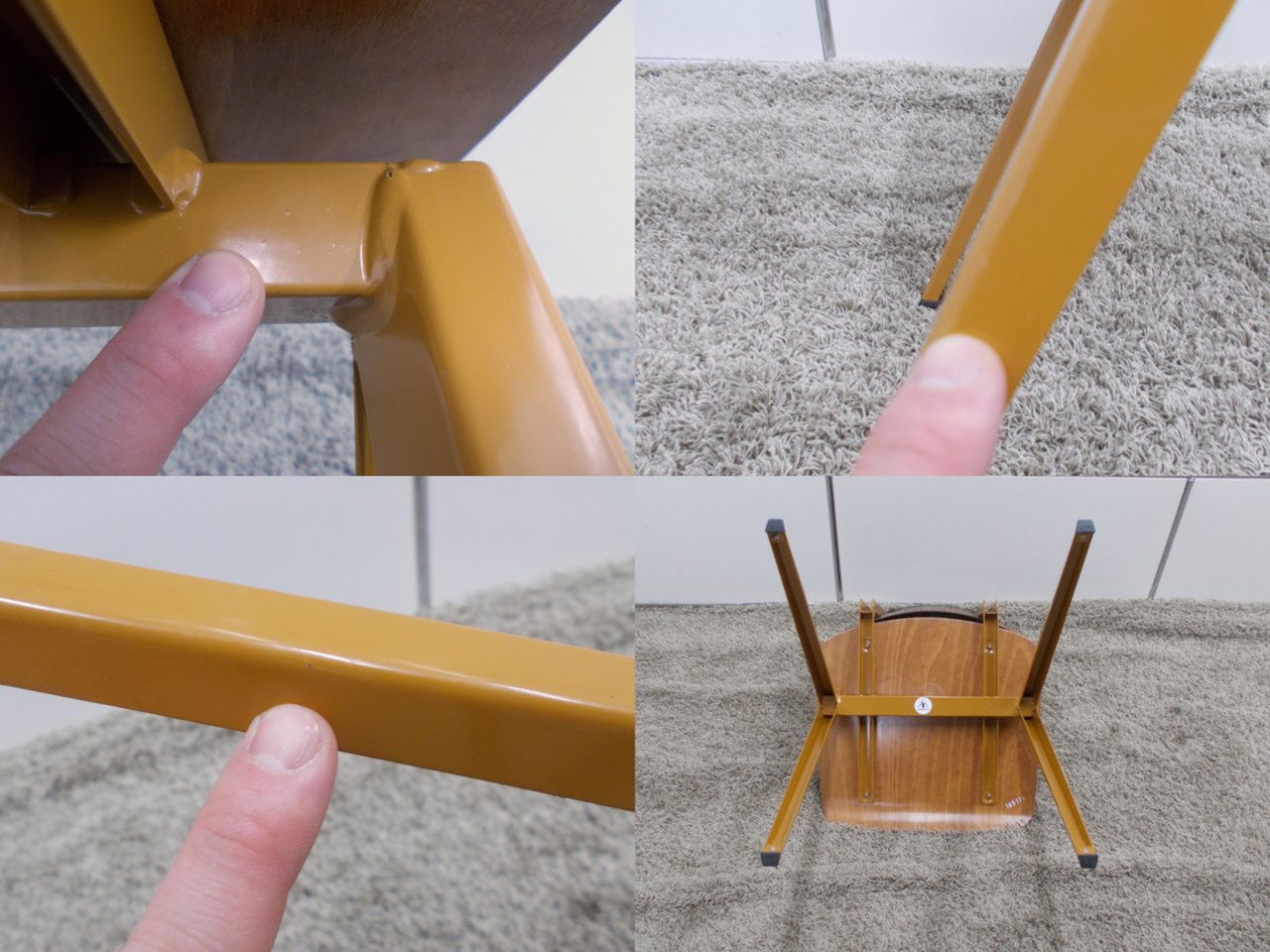 - かなり強い濃い黄ばみ・変色が商品全体にある。(例、座面・背もたれ、脚部等にある。)