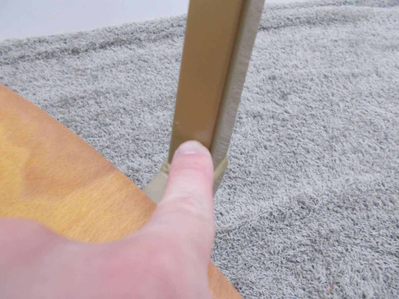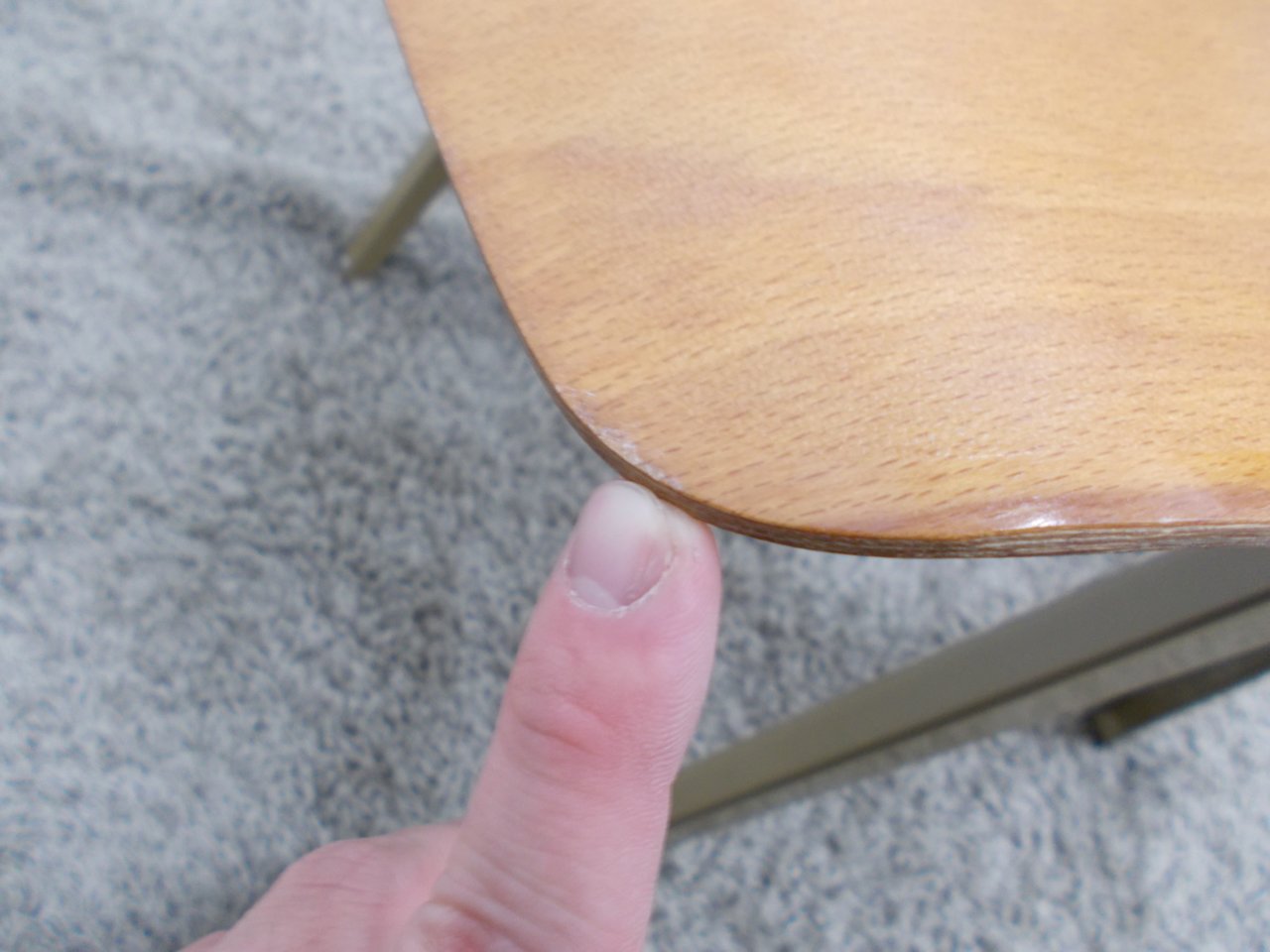 - かなり強い濃い黄ばみ・変色が商品全体にある。(例、座面・背もたれ、脚部等にある。)