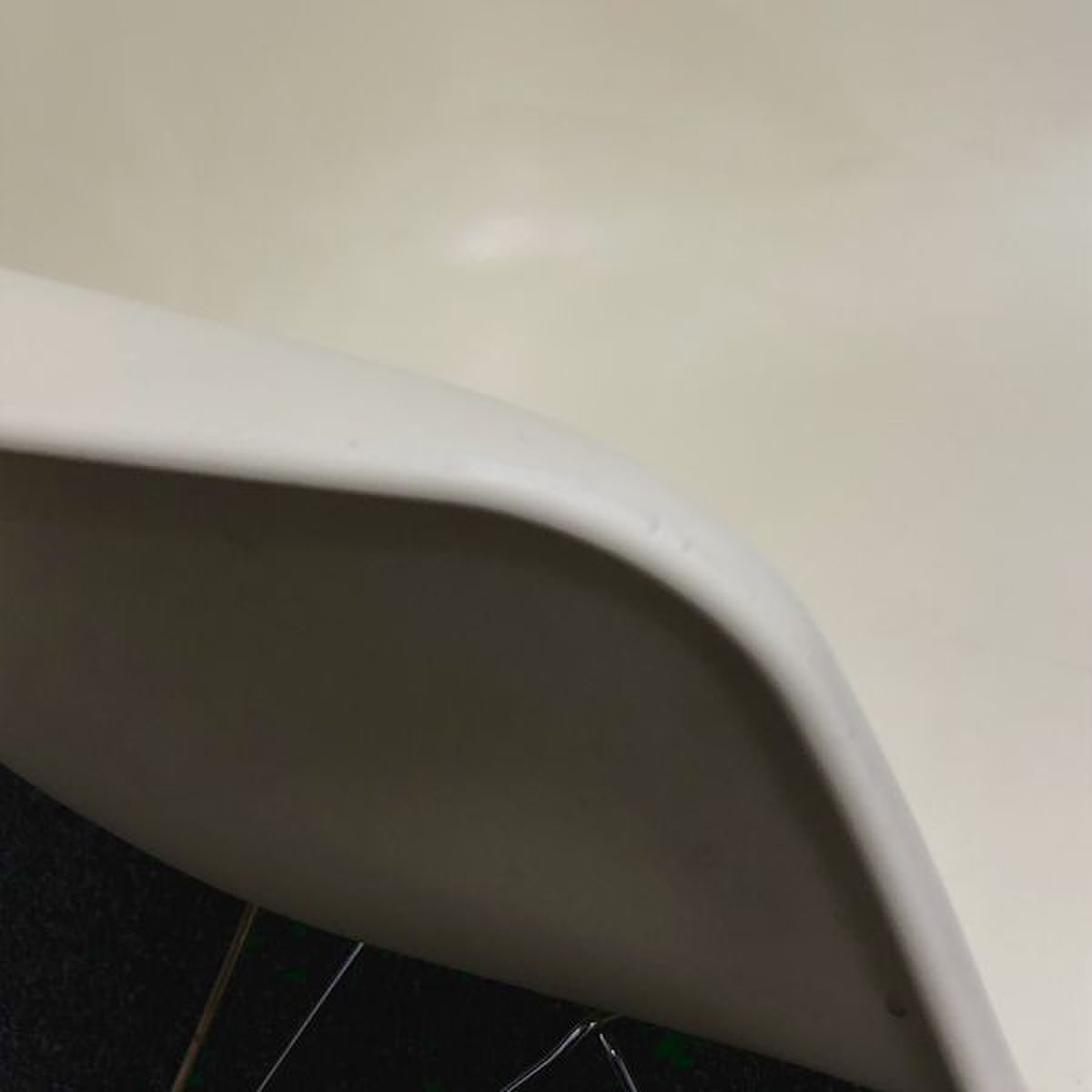 - かなり強い濃い黄ばみ・変色が商品全体にある。(例、座面・背もたれ、脚部等にある。)