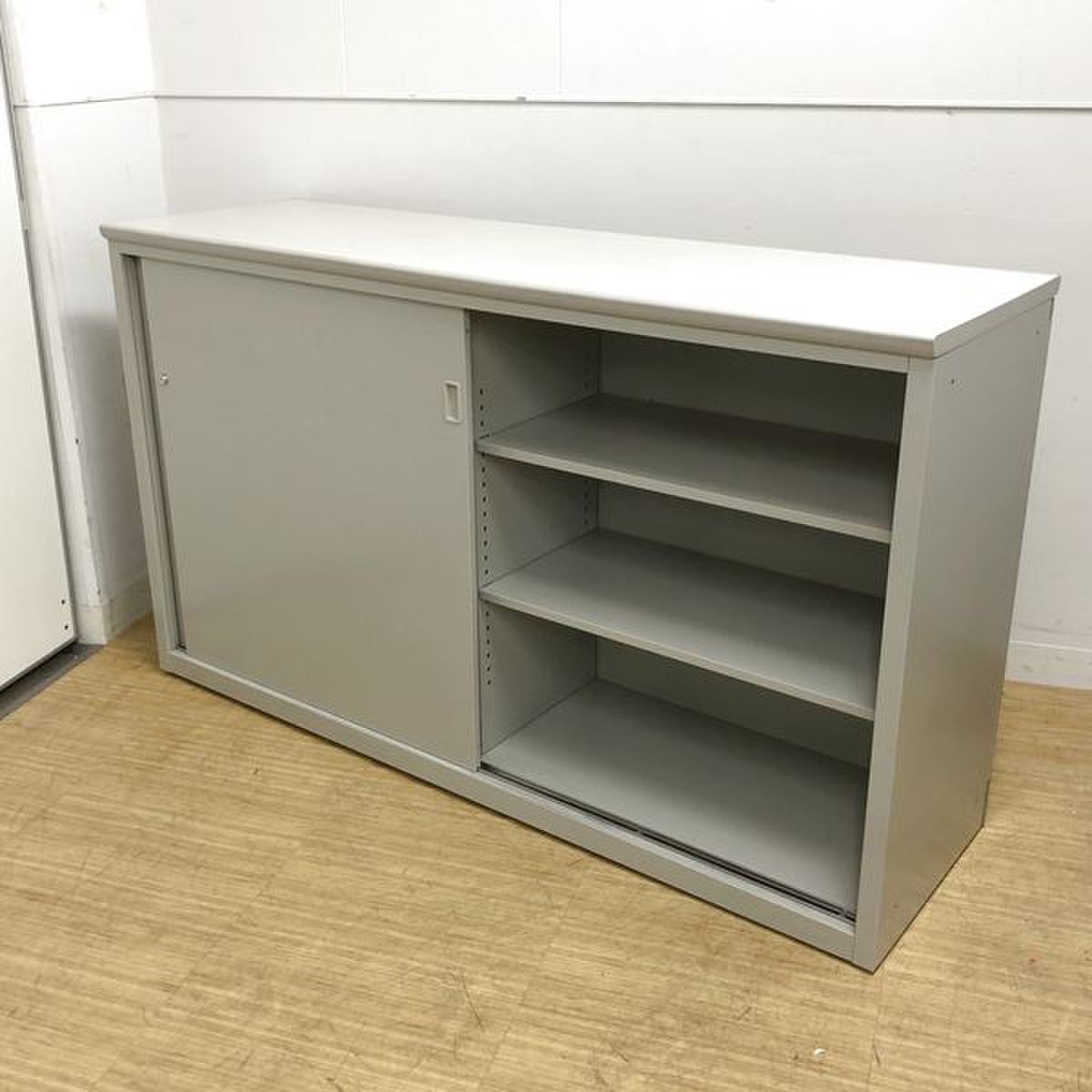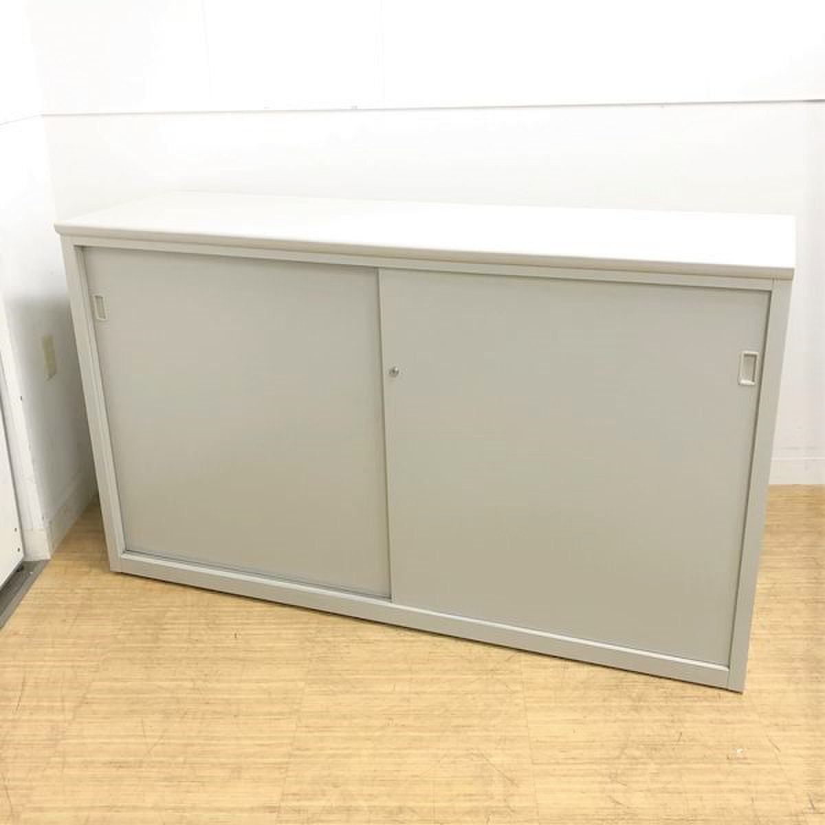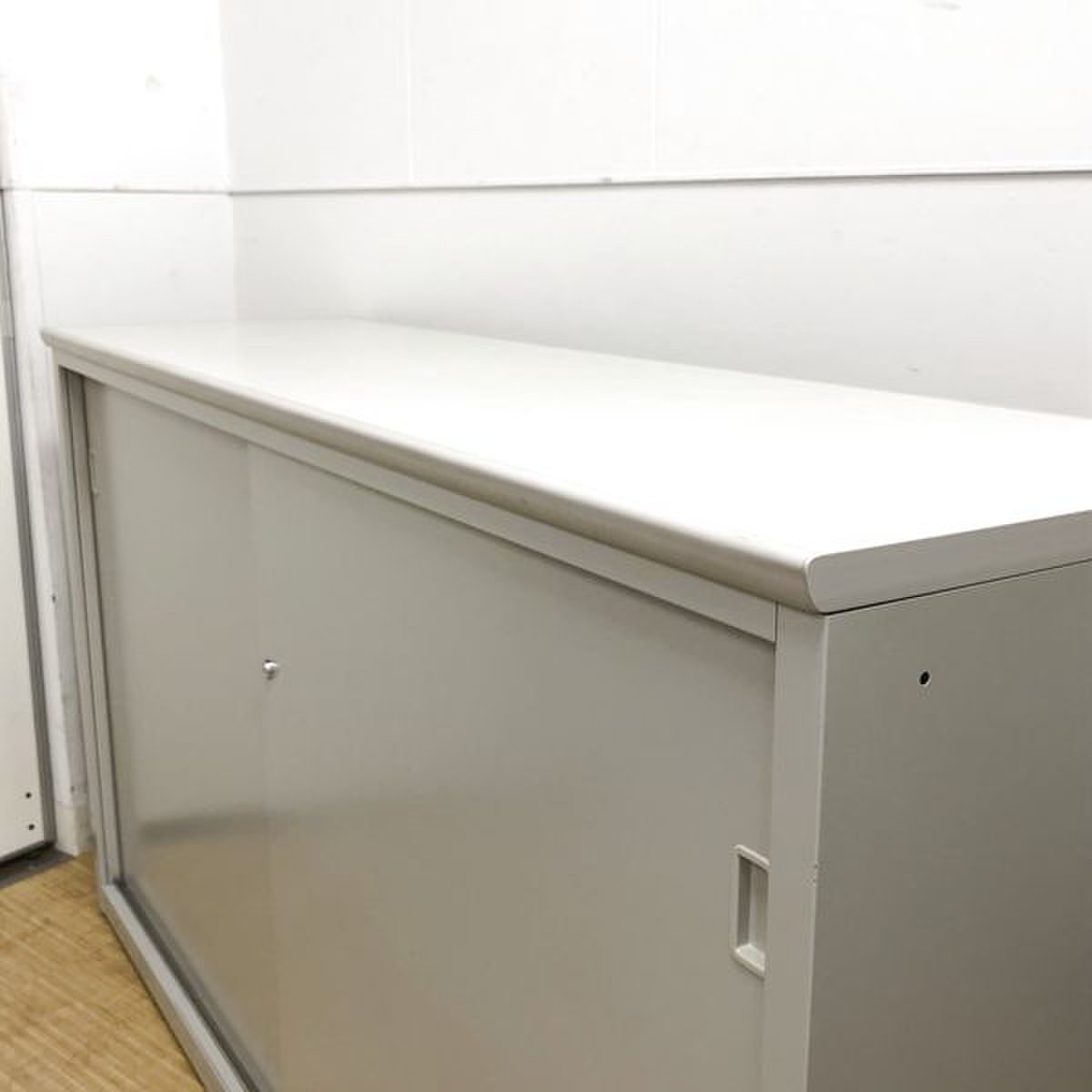 頑丈なハイカウンター オカムラ製 引き戸収納タイプ そつのないライトグレー色- 名古屋千種店