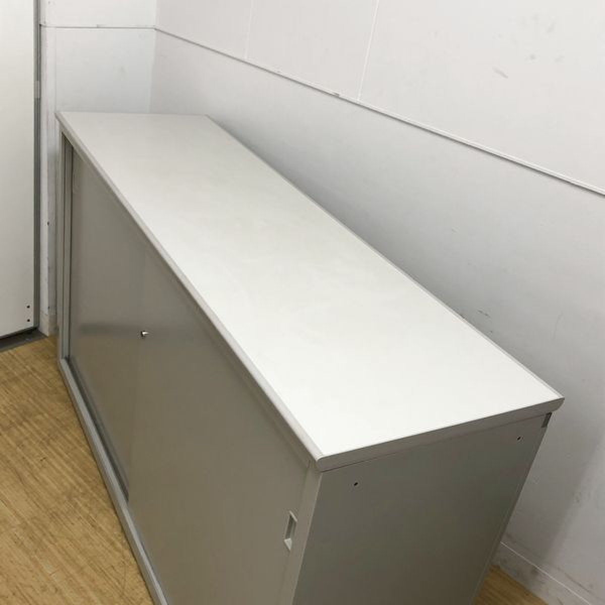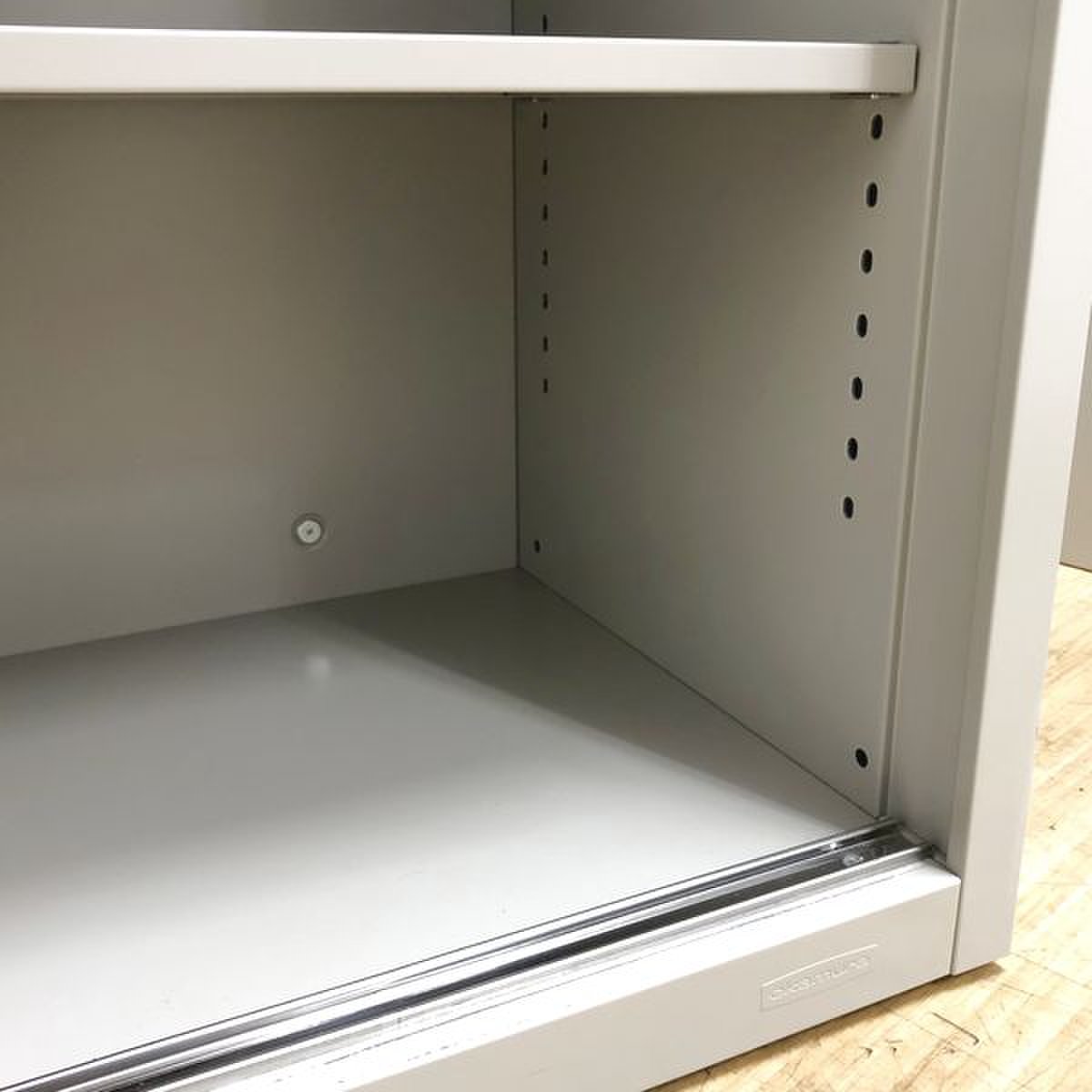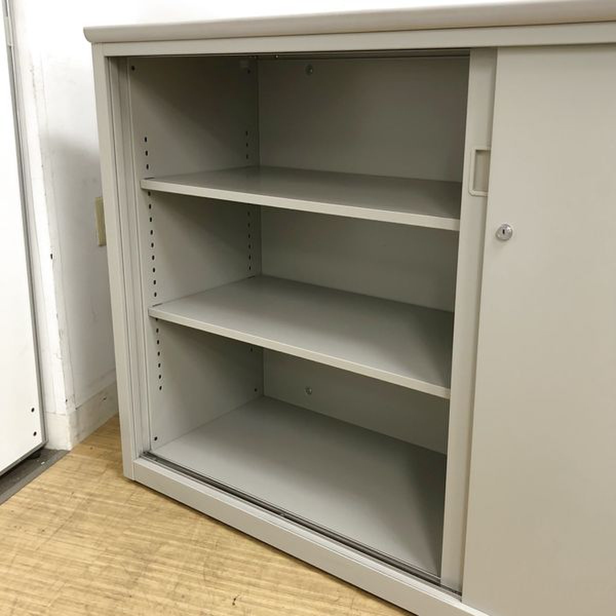頑丈なハイカウンター オカムラ製 引き戸収納タイプ そつのないライトグレー色- 名古屋千種店